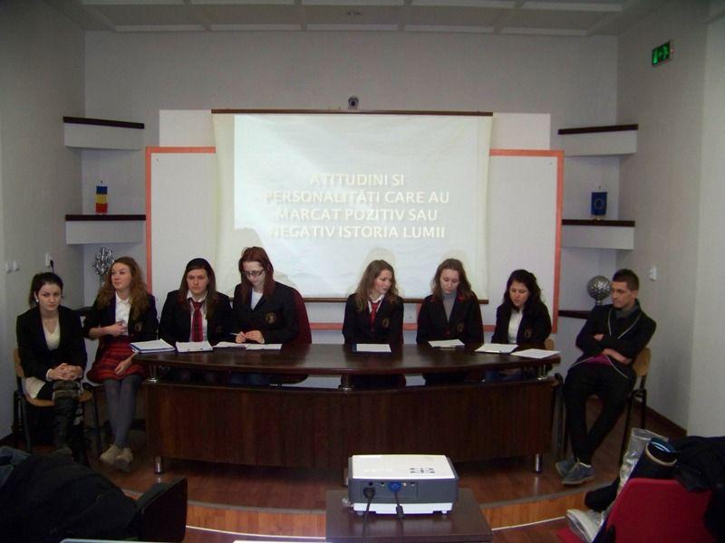 A doua activitate, „Marile personalităţi ale lumii – modele de ieri şi de azi” a fost organizată în parteneriat cu elevi de la Grupul Şcolar „Regina Maria”. Aceştia au prezentat atitudini şi personalităţi care au marcat pozitiv sau negativ istoria lumii : Hitler, Stalin, Einstein, Nicolae Paulescu, Mahatma Gandhi, Ana Aslan, Nicolae Ceauşescu. Elevii au discutat şi comentat despre contribuţiile fiecăruia, pozitive sau negative. (DorohoiNews.ro)