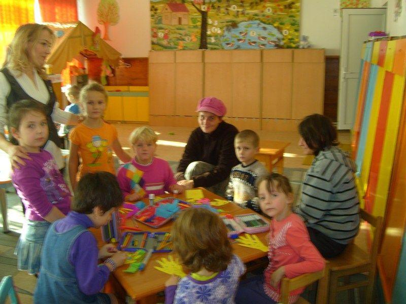 Copiii de la fundaţia “Star of Hope” alături de psiholog Gherman Loredana şi asistent social Topală Camelia au fost împreună cu preşcolarii din grupa “Fluturaşii” în cadrul activităţii “Ia-mă de mână. nu te teme/ Sunt un copil şi am probleme…”. Cu acest prilej copiii au socializat, s-au jucat împreună şi au prezentat spectacolul “Carnavalul toamnei”. Şi princhindeii din Complexul de apartamente “Casa mea” au fost vizitaţi de “Preşcolarii cu suflete mari”, care le-au oferit daruri constând în jucării şi hăinuţe.