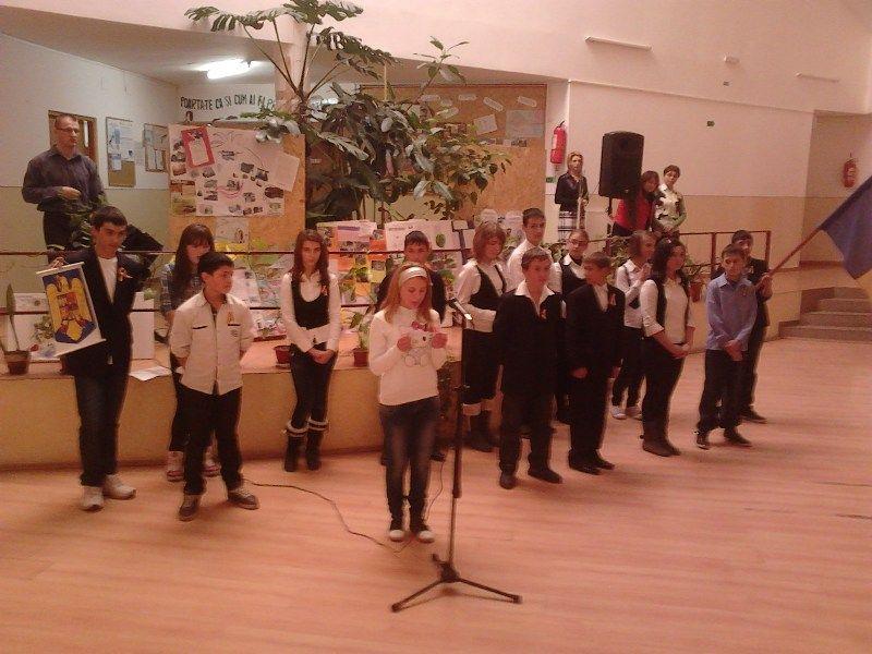 Au avut loc activităţi susţinute de către elevii claselor a VIII-a, a VII-a B şi a VI-a B. A fost intonat imnul naţional Deşteaptă-te, române!, au fost interpretate cântecele Treceţi batalioane române Carpaţii, Basarabia şi Noi suntem români (Stoica Mihnea). Elevii clasei a VI-a B au recitat poezii închinate poporului român. De asemenea, au fost recitate poeziile Patria şi România, creaţii personale ale elevilor şcolii, Ruptaş Vlad şi Lefter Sorina.