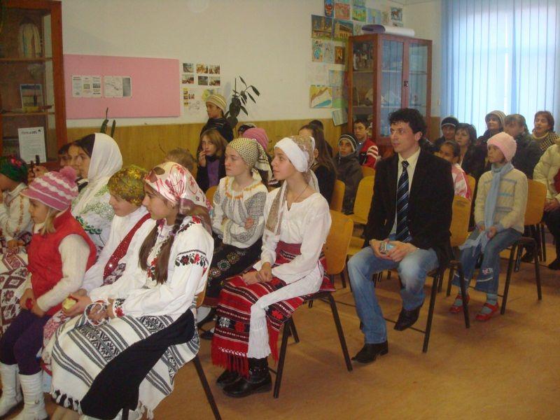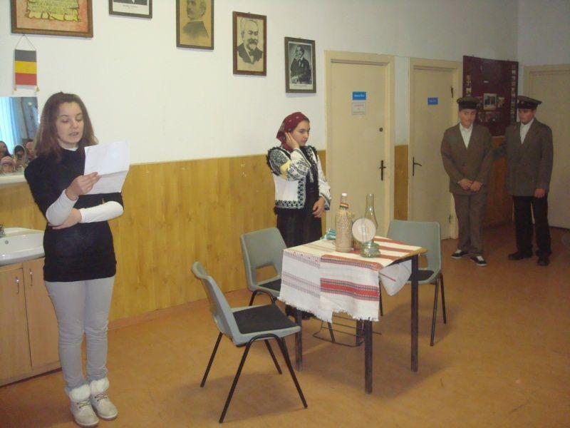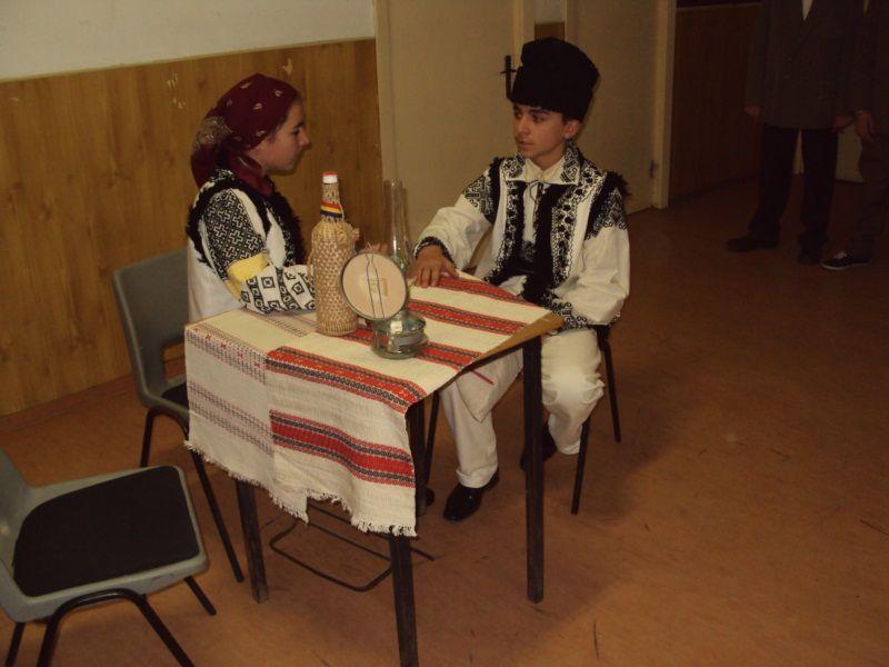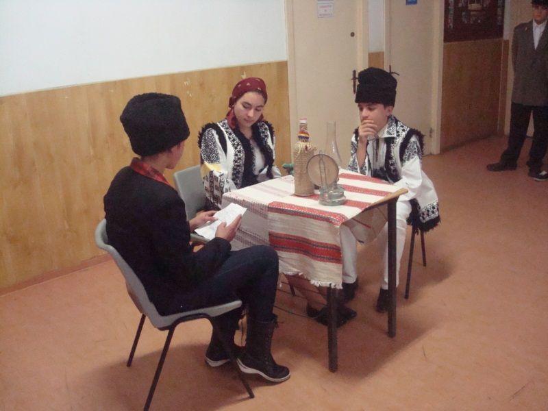Elevii claselor V-VIII de la Şcoala cu clasele I-VIII Borzeşti, comuna Ungureni coordonaţi de prof. Enacache Maria şi prof. Apostol Alexandru au pus în scenă o şezătoare cu cântece, poezii şi ghicitori.