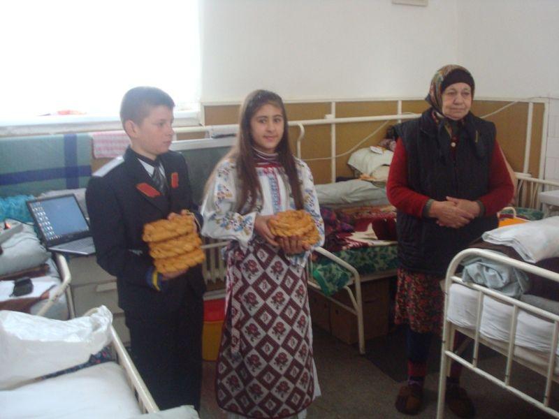Actiunea umanitara "De la copii pentru bătrâni" a fost organizată de prof. Enacache Maria şi prof. Apostol Alexandru, care au pregătit un grup de 15 elevi talentaţi şi inimoşi în vederea susţinerii unei mici scenete dedicate sărbătorii Crăciunului. Programul a continuat cu un recital de colinde şi poezii, activitatea încheindu-se cu obiceiuri specifice Anului Nou.