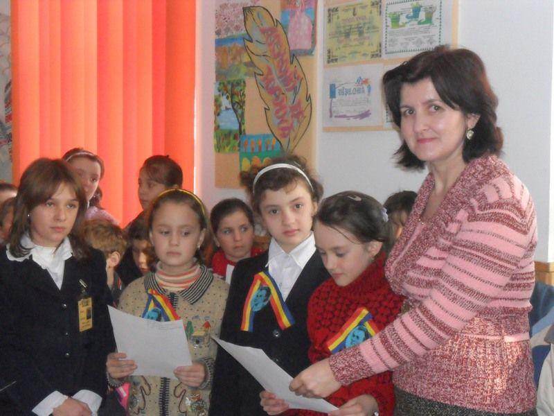 Doamna învăţătoare Dodu Angela explică participanţilor legătura istorică între Eminescu şi Unire: ,,Trăind între 1850-1889, Eminescu simţea proaspete urmele anexării din 1812 a întregului teritoriu dintre Prut şi Nistru la Rusia. A trăit pe viu retrocedarea către Moldova, prin Tratatul de la Paris din 1856, a unei părţi (Basarabia geografică) din teritoriul anexat abuziv de ruşi în 1812. A trăit unificarea ţărilor române extracatpatice sub Alexandru Ioan Cuza, la 1859.”
