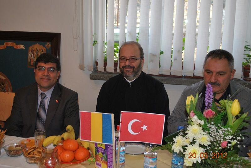 Delegaţia turcă a sosit marţi 20.03.2012 la orele 10.00 la Seminarul dorohoian unde după protocolul de primire care a inclus intonarea imnelor celor 2 state, schimbul oficial de informaţii şi servirea tradiţionalului ceai negru turcesc, au fost vizitate clădirile internat şi şcoală. Câţiva copii de la Şcoala „Ion Pillat” îndrumaţi de profesoarele lor au oferit câteva simboluri ale primăverii- mărţişoare lucrate de ei. În paraclisul Seminarului oaspeţii au audiat un scurt concert de muzică psaltică susţinut de corul „Agnus” dirijat de elevul Mirel Boacă din anul IV, după care au asistat la orele de limbă engleză susţinute de d-na prof. Elena Chicoş şi d-na prof. Elena-Magda Şoptică.