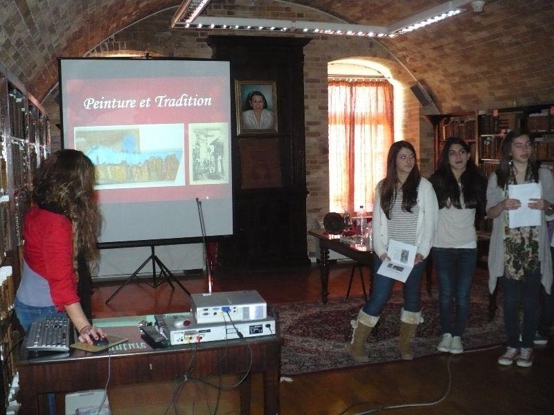 Au fost prezentate şcoala si oraşul Kerkyra, Corfu, din perspectiva istoriei, a religiei si a tradiţiilor prin Muzeul Etnografic si Muzeul de Arheologie, Siturile arheologice, Galeria municipala, Biserica Sf. Spiridon. Elevii au realizat o expoziţie cu numele „Peinture et tradition” in Galeria Nationala din Corfu, cat si o expunere teoretica pe baza tablourilor inspirate din tradiţiile fiecărei tari. In Foaierul Teatrului din Kerkyra a avut loc activitatea „Des danses folkloriques” unde elevii provenind din cele 5 tari partenere au interpretat dansuri tradiţionale specifice regiunii si tarii din care provin.