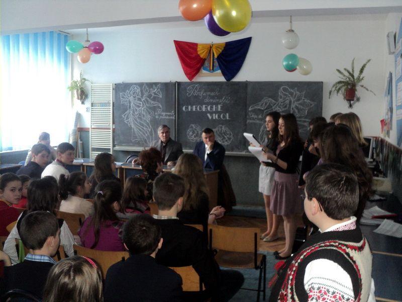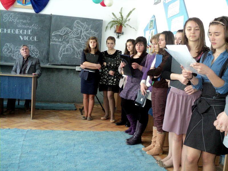 Au vorbit despre opera acestuia, care cuprinde carti de proza si poezie, auxiliare didactice, profesorii: Elena Bucur, Aurelian Antal, Vasile Danila, Vasile Adascalitei, Elena Wilhem, Cristina Vicol. Am consemnat cateva din remarcile celor prezenti: «Activitatea de astazi are o incarcatura emotionala aparte, autorul volumului fiind un fost elev al Liceului Pedagogic din Suceava, pe care l-am absolvit si eu.» (prof. Rica Rotariu); «Poezia din cartea lansata astazi se adreseaza exclusiv copiilor iar cele 72 de poezii din volum au un profund mesaj destinat varstei copilariei.» (prof. Vasile Adascalitei); «Este o adevarata intalnire cu fostii mei elevi, dintre care unul este si autorul cartii, ceea ce intregeste profunde nostalgii. Felicit organizatorii, dar si pe poet!» (prof. Vasile Danila); «Aceasta activitate tematica realizata in colaborare cu C.D.I. s-a dorit a fi un pretext pentru trezirea interesului de lectura al elevilor scolii noastre, redimensionandu-se pe spatii lirice.» (prof. Laura Munteanu Miron); «Poezia lui Gheorghe Vicol este o plasmuire a unei lumi misterioase : cea a copilariei.» ( prof. Aurelian Antal). Semnalam si faptul ca acest volum de versuri se bucura de referinte extreme de elogioase din partea unor nume de referinta in domeniul criticii literare: Al. Florin Teme- membru corespondent al Academiei Americano-Romana si presedintele Ligii Scriitorilor Romani, prof. univ. Mihai Pastragus – Redactor Sef al revistei «Moldova literara» Iasi si lector univ. dr. Horatiu Catalano – Universitatea «Babes Bolyai» Cluj Napoca.