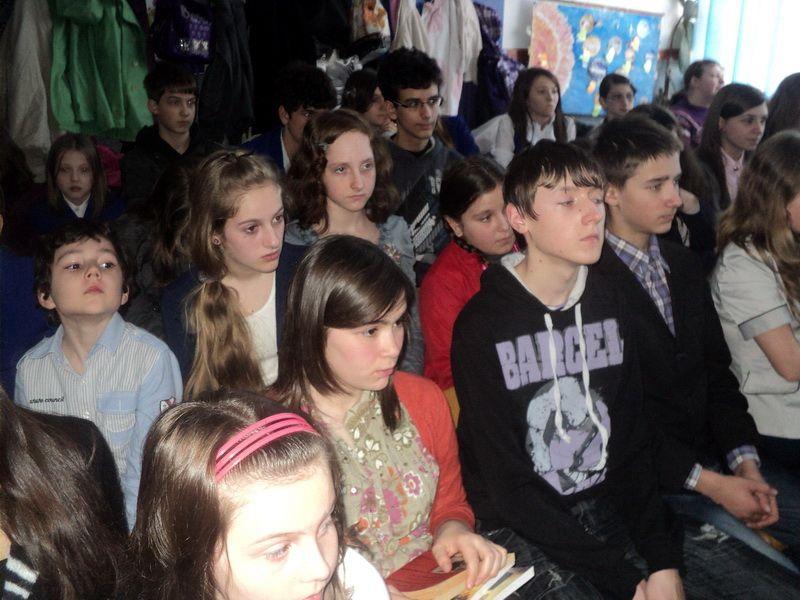 In paralel, clasa a-VI-a A, a aceleeasi unitati scolare, a avut o intalnire cu membrii Cenaclului “Editor” din Dorohoi, tema acesteia fiind exercitiul poetic si valorificarea lui in cadrul cercurilor literare, auditoriul fiind captivat de abordarile realizate de prof. dr. Ciprian Voloc si Nicu Anton. (prof. Corneliu Drescanu) (DorohoiNews.ro)