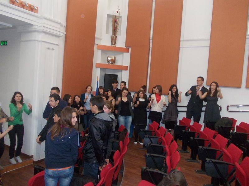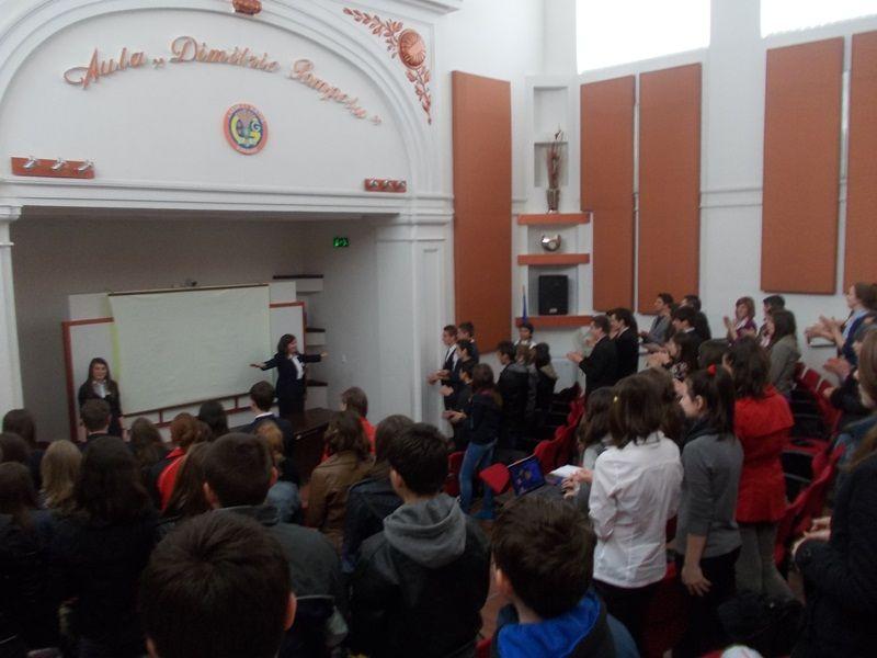 Încântarea şi emoţia de a descoperi viaţa de liceean a fost dublată de activităţile desfăşurate de elevii – gazdă în Aula “Dimitrie Pompeiu”: prezentări în power point despre activităţile extraşcolare şi rezultatele deosebite la olimpiade şi concursuri şcolare; momente muzicale şi momente distractive, invitaţii fiind direct implicaţi în jocuri de spargere a gheţii, precum Energizer sau Domino uman.
