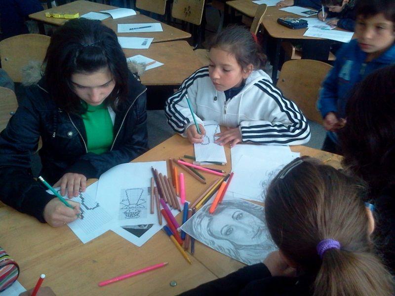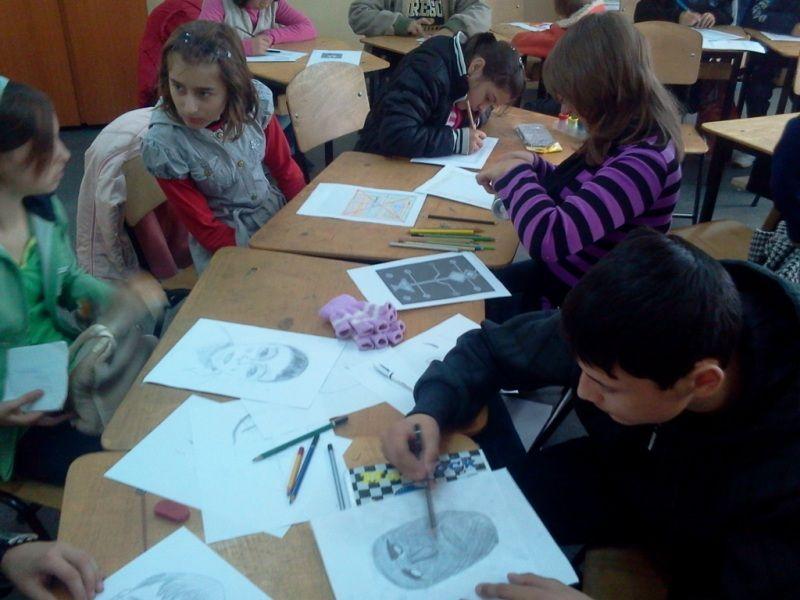 • Corespondenta dintre arte - atelier desfăşurat pe un fundal muzical adecvat; a presupus deprinderea unor tehnici de realizare a portretelor, crearea unor semne de carte şi realizarea unor iluzii optice cu ajutorul figurilor geometrice.