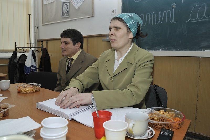 Implicate in acest proiect sunt cadre didactice si elevi de la Scoala nr. 5 “Spiru Haret” Dorohoi (clasa a-VII-a A, diriginte-prof. Marcel Anghelus) si de la Grupul Scolar “Regina Maria” Dorohoi (clasa a-XI-a C, profilul “Stiinte Sociale”, diriginta-prof. Sonia Murariu). Acestia, in colaborare cu Filiala Botosani a Asociatiei Nevazatorilor din Romania, au organizat in data de 06.04.2012, intre orele 10-12, la “Regina Maria”, o intalnire cu doi membrii de seama ai Filialei (Paraschiva Seliman, cea mai buna cititoare in Braille si Sandu Surugiu, violinist si acordeonist in orchestra de muzica populara “Entuziastii”), insotiti de d-na Carmen Moraru, referent cultural in cadrul Filialei.