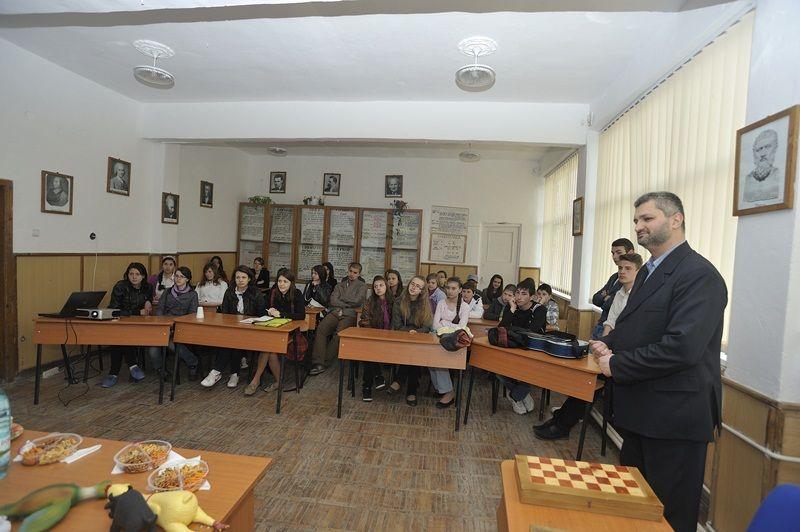 Prima secventa a activitatii a fost dezbaterea pe marginea cartii autobiografice “Omul cu ochelari negri”, de Ion Blajan, cea mai activa fiind eleva Adelina Borta (XI C). Elevii au purtat o discutie foarte interesanta si utila cu invitatii, despre aspecte din viata cotidiana a nevazatorilor.