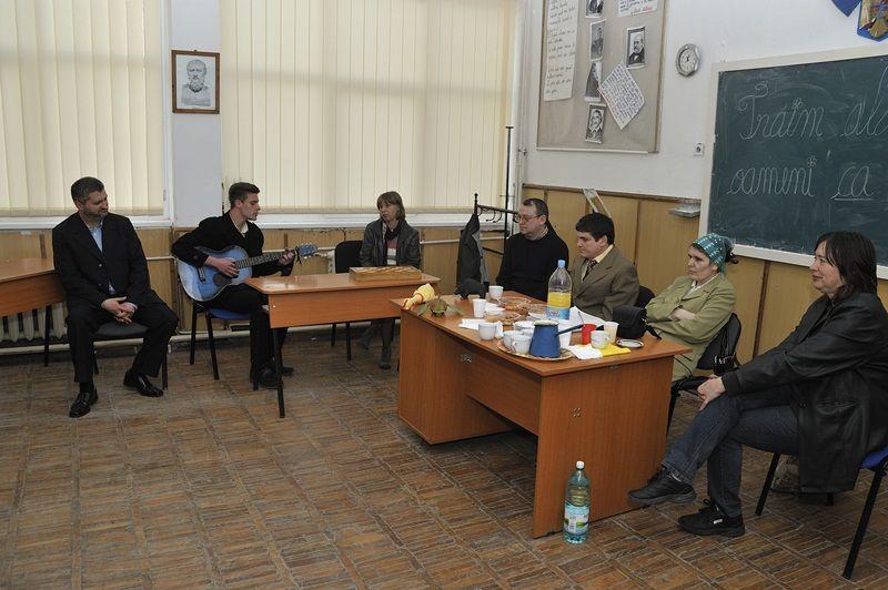 In final, Marius Patrascanu a recitat sonetul “Mangaierile unui orb”, de Mihail Codreanu (adaugand comentarii foarte pertinente), Eduard Bostan a interpretat la chitara o melodie romantica, iar elevele Andreea Leparda si Laura Macoviciuc (VII A), doua voci de un real talent, au daruit invitatilor CD-uri cuprinzand melodii proprii.
