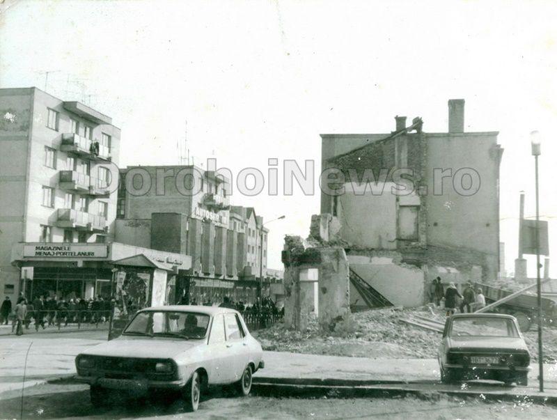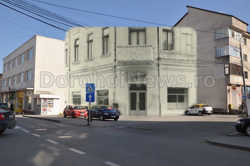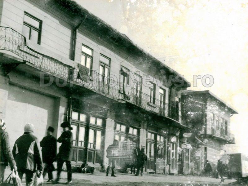 Raza de cuprindere a aparatului fotografic a surprins această clădire, situată pe colțul care intersecta strada care ducea către Piață cu strada 30 Decembrie și pornea de sus, din fața Cinematografului Cultural, terminându-se jos, cu acces către intrarea prin laterala Pieței (aproximativ pe locul unde acum este Pescăria), Podul Botoșani sau către Uzina Electrică, bătrânelele clădiri fiind demolate în anii '80.