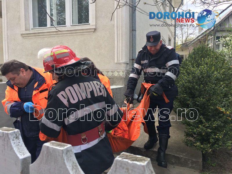 Pompierii dorohoieni au fost solicitaţi vineri, 14 aprilie 2017, în jurul orei 13:30, pentru a interveni pe strada Grigore Ghica din Dorohoi. Din primele informații de la locul incidentului, Magdalena C., în vârstă de 92 de ani, făcea mâncare şi într-un moment de neatenţie hainele cu care era îmbrăcată s-au aprins.