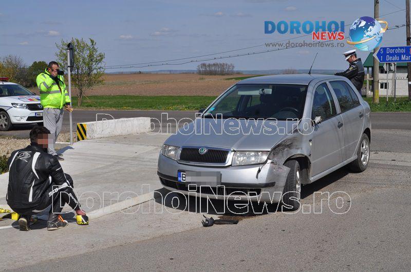 Din primele cercetări, se pare că atât motociclistul cât și autoturismul, condus de un bărbat din Dorohoi, se deplasau pe DN 29B, dinspre Văculești spre Dorohoi. În localitatea Saucenița, șoferul autoturismului a virat stânga, moment în care motociclistul nu a mai putut evita și a acroșat autoturismul. În urma accidentului M.I., șoferul motocicletei, a fost rănit.