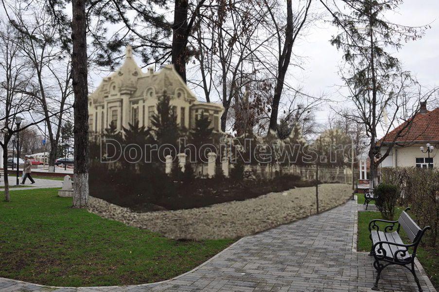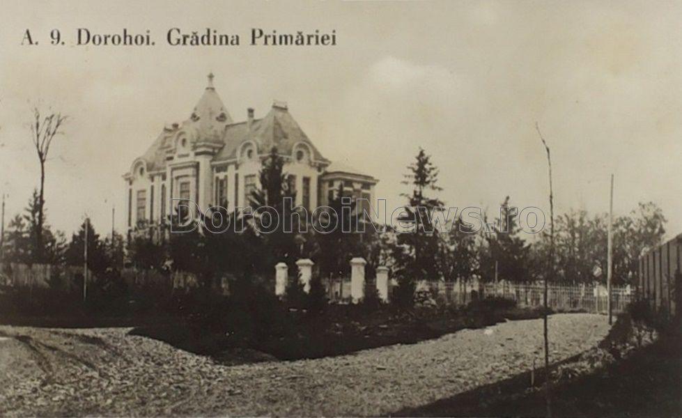Fotografia pe care v-o prezentăm astăzi, înfăţişează Primăria oraşului Dorohoi, surprinsă din parcul situat între străzile Al. I. Cuza şi Grigore Ghica, având ca vecinătăţi C.A.R.