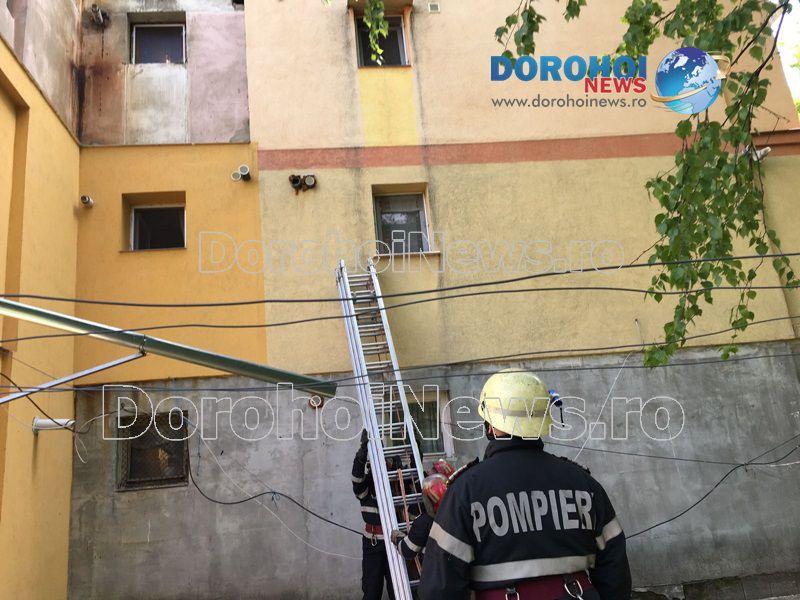 Pompierii sosiți la locul indicat, au identificat apartamentul ce se afla la etajul doi al unui bloc situat pe Aleea Mărului din Dorohoi și, pentru a evita producerea pagubelor prin forțarea ușii, au intrat pe geamul de la bucătărie care era întredeschis. În apartament a fost identificat un bărbat imobilizat la pat și o femeie în vârstă de 62 de ani, care suferise un accident vascular cerebral.