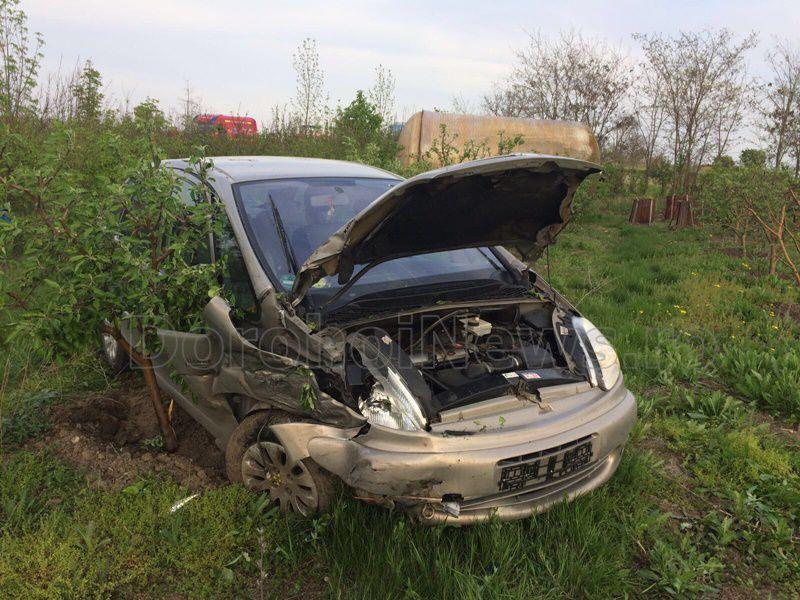 După ce cele două autoturisme s-au izbit, şoferul de la Citroen a tras mult stânga de volan şi maşina a ieşit câţiva zeci de metri zburând practic peste un şanţ şi un gard viu. Două persoane din autoturismul Citroen au fost preluate de un echipaj TIM SMURD şi o ambulanţă şi au fost transportate la spital. Poliţiştii au deschis un dosar penal pentru vătămare corporală din culpă. Sursa: botosaninews.ro