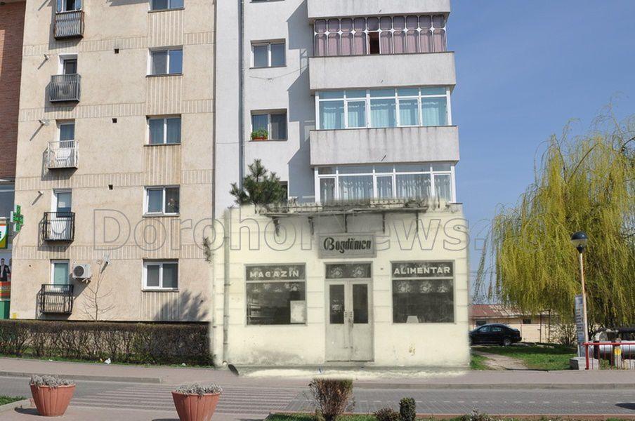 Magazinul alimentar „Bogdănica”, care avea o ofertă diversă și atractivă, era situat la parterul unui imobil, pe sensul drumului spre Spital – azi, Bulevardul Victoriei -, având ca vecinătăți proprietăți evreiești și o curte de acces, destinată aprovizionării. Postăm și o altă fotografie, pentru ilustrarea și identificarea acestei zone. Pe acest loc, astăzi, se află o Agenție de transport internațional. Fotografia are nuanțe hibernale, dar prin sentimentul unui anotimp al luminii, putem găsi fața schimbată în bine, a așezării noastre urbane.