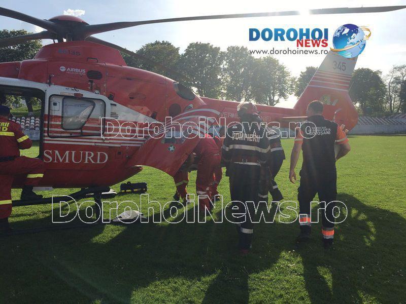 Aparatul de zbor a aterizat pe stadionul „1 Mai” din Dorohoi, în jurul orei 18:35, de unde l-a preluat pe bărbat, pentru a-l transporta la Iași. (Andrei B.)