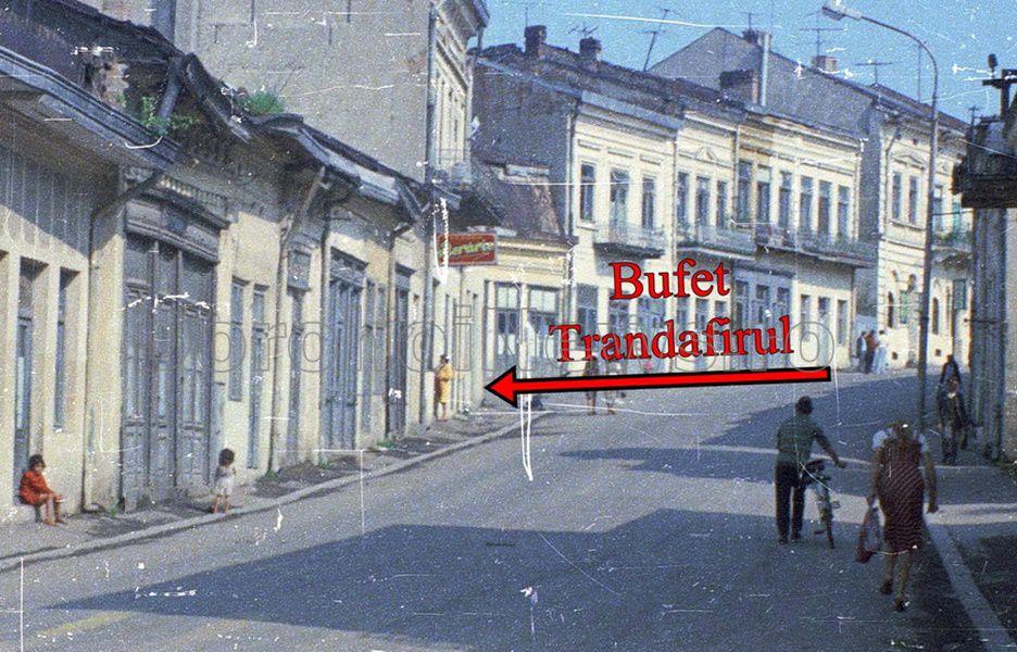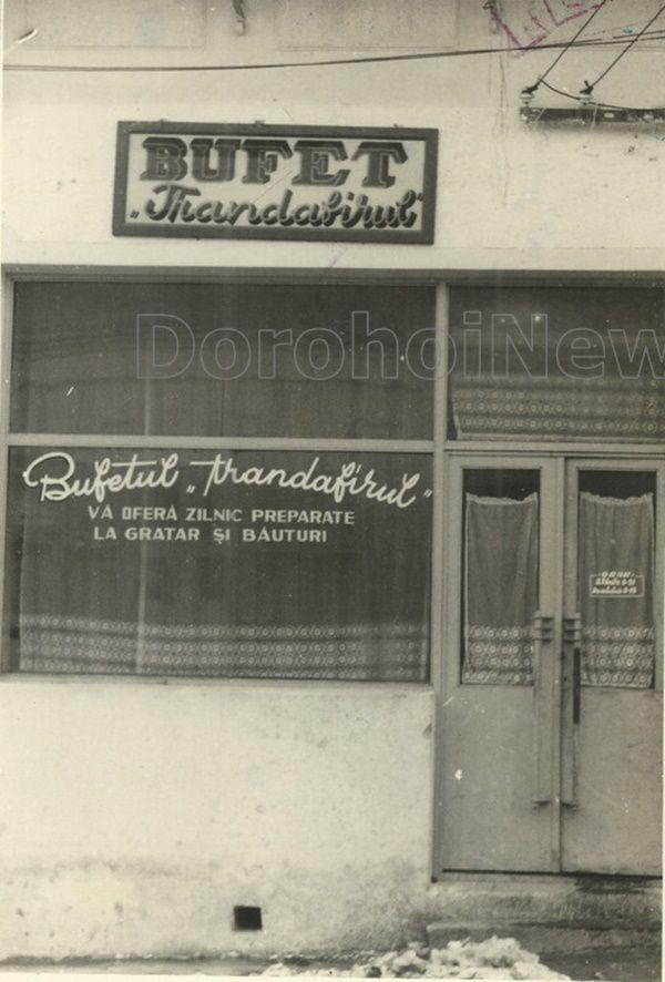 Postăm și o altă fotografie, pentru ilustrarea și identificarea acestei zone. Localul la care facem referire avea o firmă atrăgătoare prin oferta timpului, scrisă cu o caligrafie impecabilă, sub aspect artistic, dar cu o ortografie personalizată. Acest bufet era cunoscut în anii din urmă ca un punct de atracţie prin simplitatea lui, dar şi prin poziţionarea în geografia oraşului, având de-a lungul timpului ca gestionari pe doamnele Alexandrescu, Vatamanu, Cuciureanu şi pe domnii Buium, Dodu şi Jitaraşu.