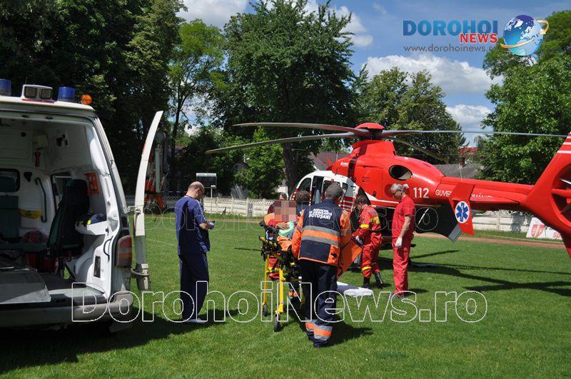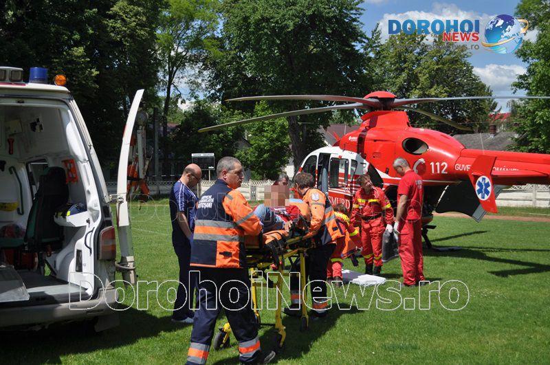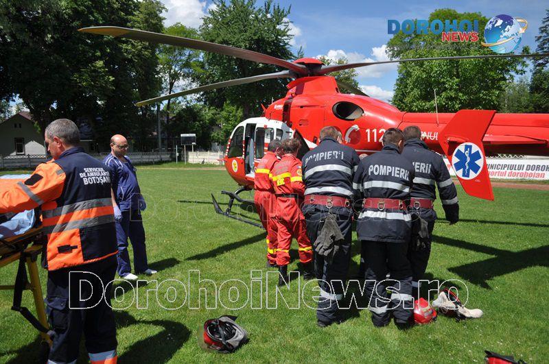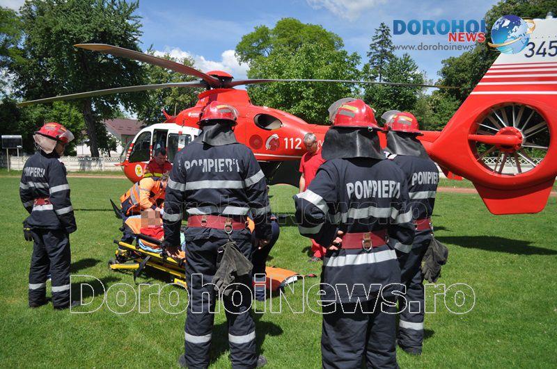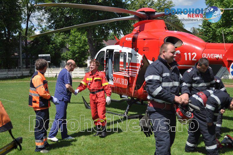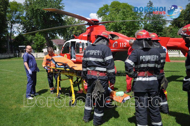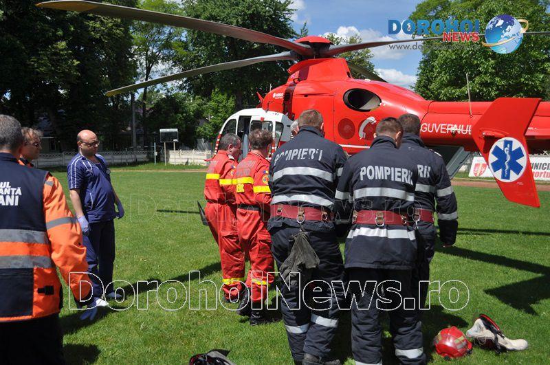 Aparatul de zbor a aterizat pe stadionul „1 Mai” din Dorohoi, în jurul orei 14:00, de unde l-a preluat pe bărbat, pentru a-l transporta la Iași. (Andrei B.)