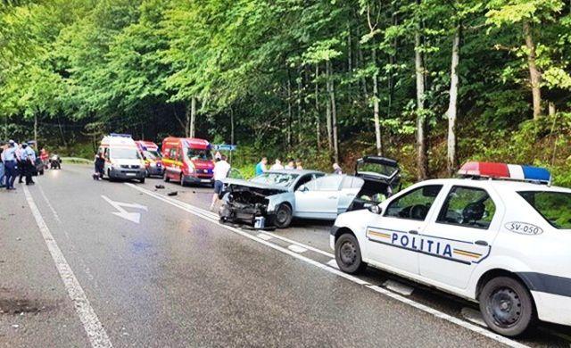 Un autoturism VW Passat, condus de un tânăr de 30 de ani din Hunedoara, care se deplasa dinspre Suceava către Gura Humorului, a pătruns pe contrasens izbind în plin un autoturism VW Golf cu numere de Botoșani, care venea dinspre Gura Humorului. Autoturismul  Golf era condus de Cezar B., de 37 de ani, din Botoșani, care se afla în mașină alături de soția, de 35 de ani, și cei doi copii de 5 și 9 ani. În urma impactului, Golful a fost aruncat în șanțul de pe marginea șoselei. În VW Passat alături de șofer se afla și prietena acestuia.