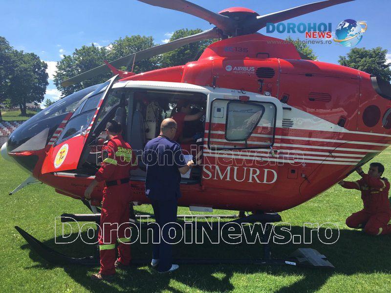 Aparatul de zbor a aterizat pe stadionul „1 Mai” din Dorohoi, în jurul orei 13:50, de unde a preluat-o pe femeie, pentru a o transporta la Iași. (Andrei B.)