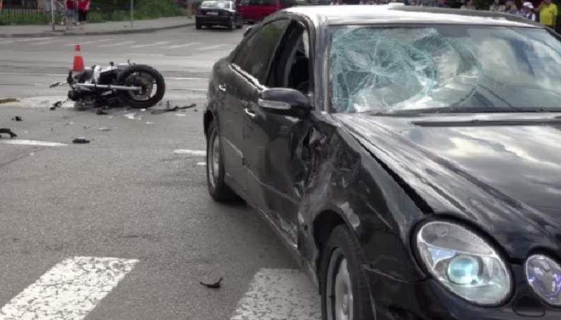 Un motociclist care circula pe şoseaua principală nu a mai putut evita impactul cu maşina.
