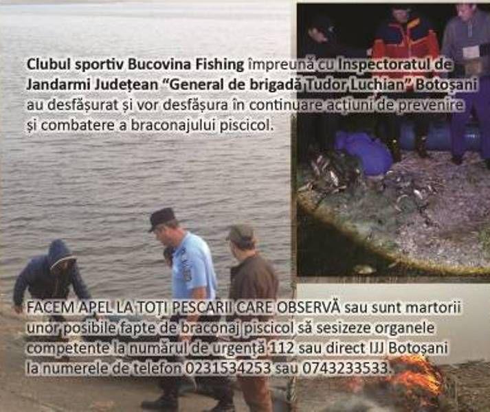 În data de 13 iunie a.c., Inspectoratul de Jandarmi Județean Botoșani a lansat campania de informare „PESCUIT RESPONSABIL PENTRU UN PESCUIT DURABIL!”, având ca partener Clubul Sportiv Bucovina Fishing Suceava.