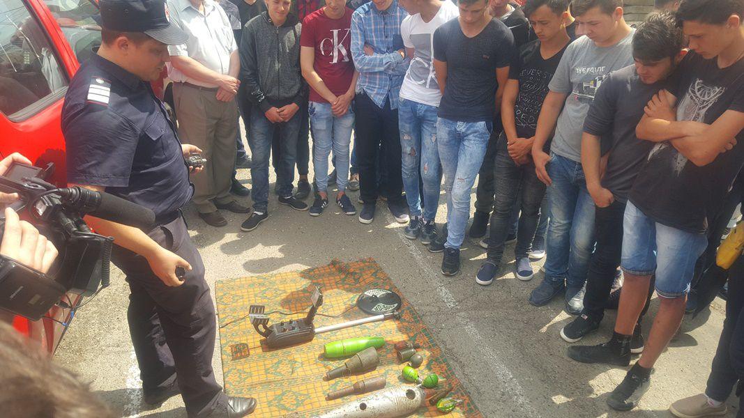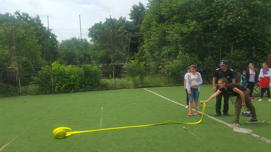 Elevii au participat și la stingerea diferitelor tipuri de incendii (de lemn, furaje și produse petroliere) utilizând atât, accesoriile din dotarea autospecialelor de intervenție, cât și stingătoarele.