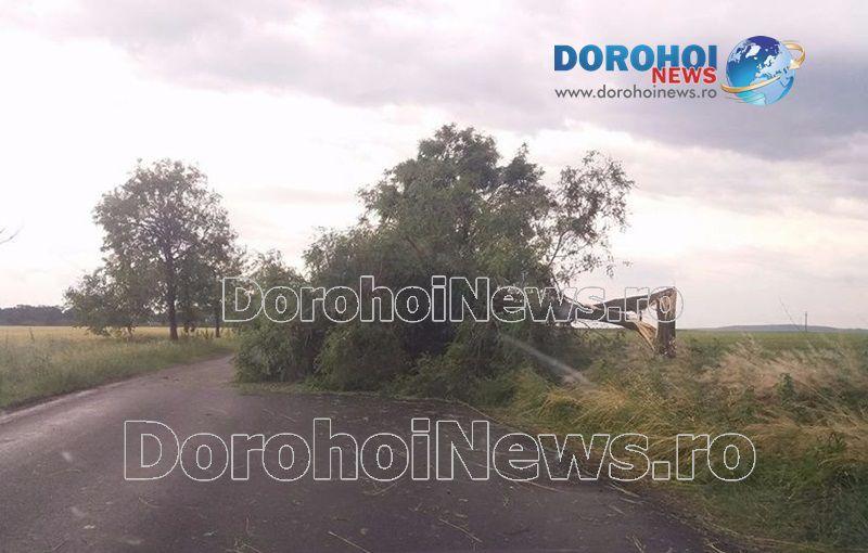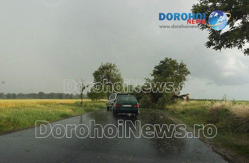 Probleme s-au înregistrat și pe drumul Dorohoi – Darabani, unde un copac a căzut pe carosabil, în urma vântului violent, cu aspect de vijelie.