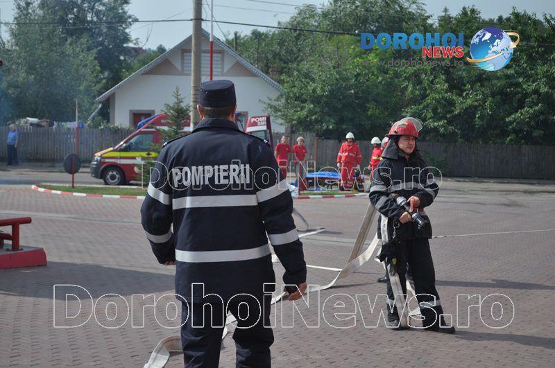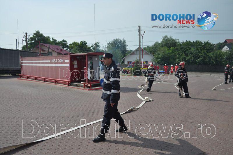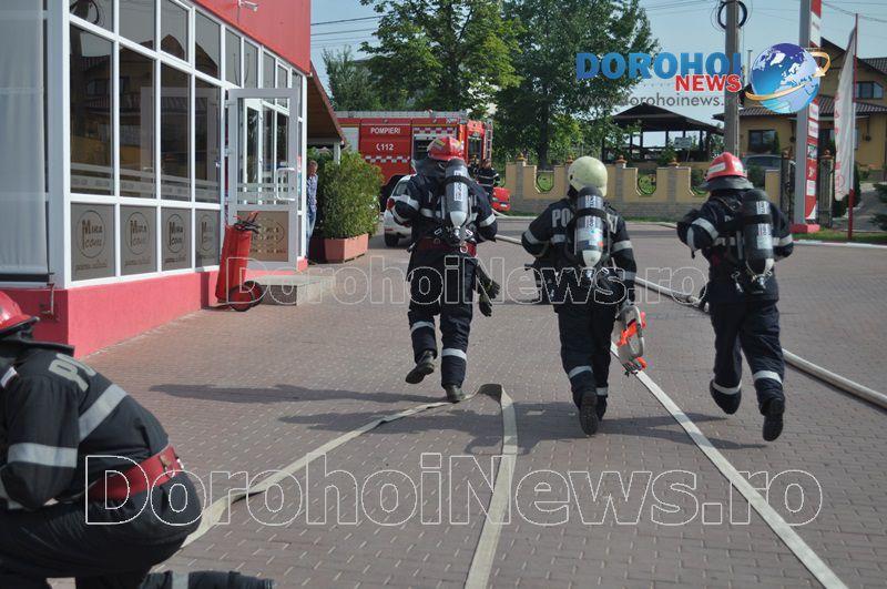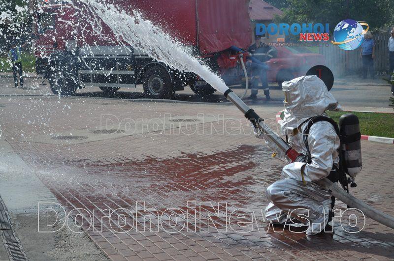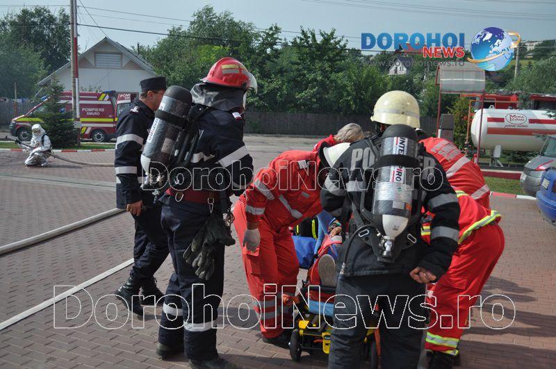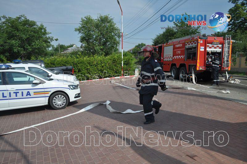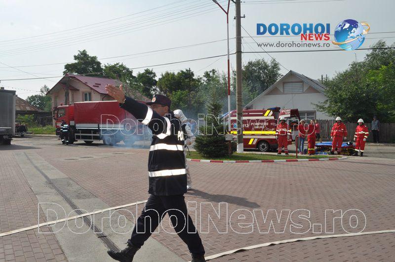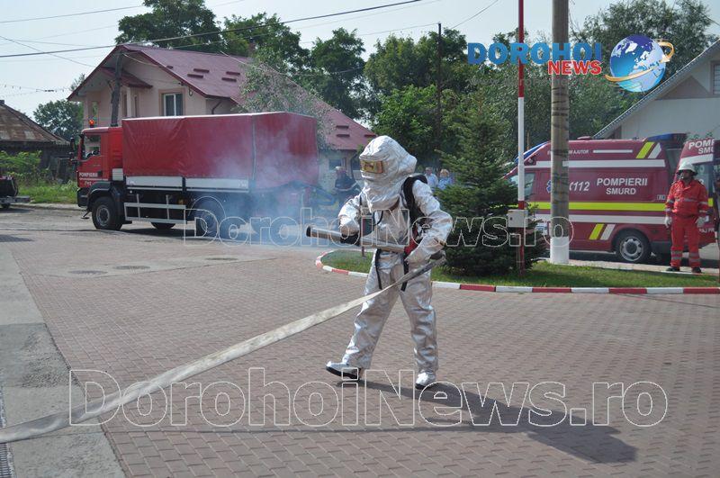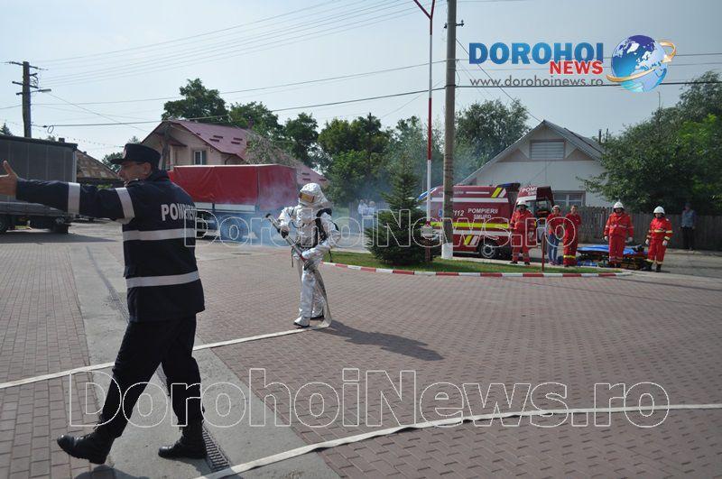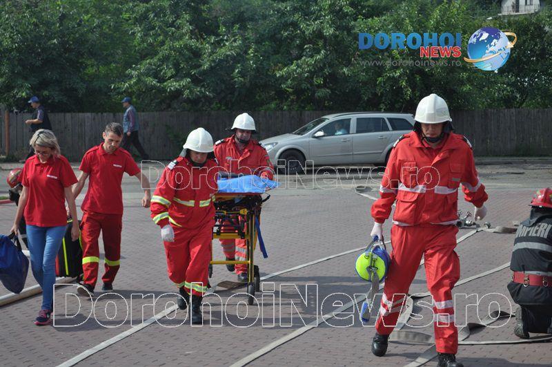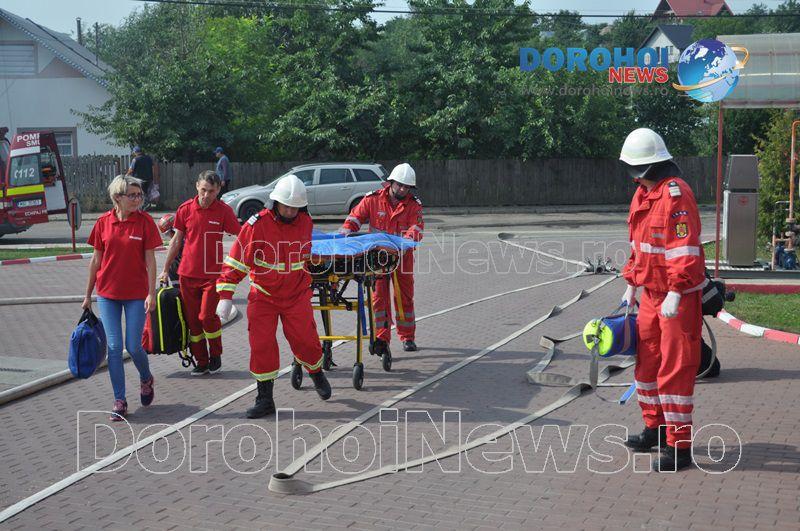 Acest exercițiu a fost unul de verificare a viabilității planurilor operative în cadrul producerii unor incendii la astfel de obiective. Exercițiul de astăzi a fost în urma producerii unui cutremur simulat urmat de un incediu și preluarea unei victime de sub dărâmături. A fost trimis anunțul prin 112 la Detașamentul de Pompieri Dorohoi, iar la fața locului s-au deplasat un număr de 17 de subofițeri, un ofițer și trei voluntari, cu trei autospeciale de stingere cu apă și spumă de capacitate mare, o ambulanță SMURD și o autospecială de primă intervenție la incendii, salvări persoane și acordarea primului ajutor, cu autospeciala UTV.