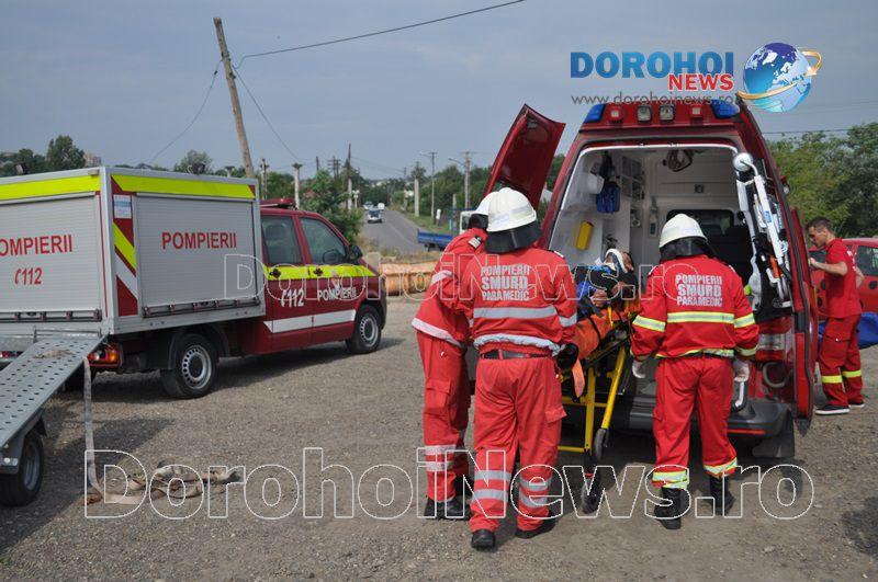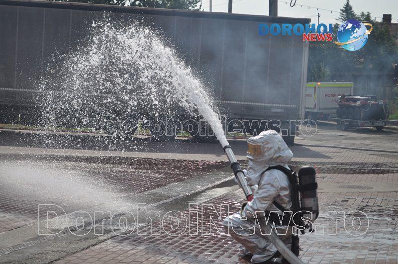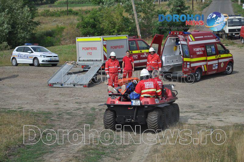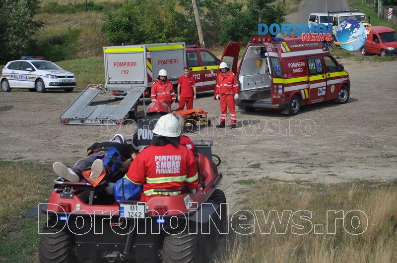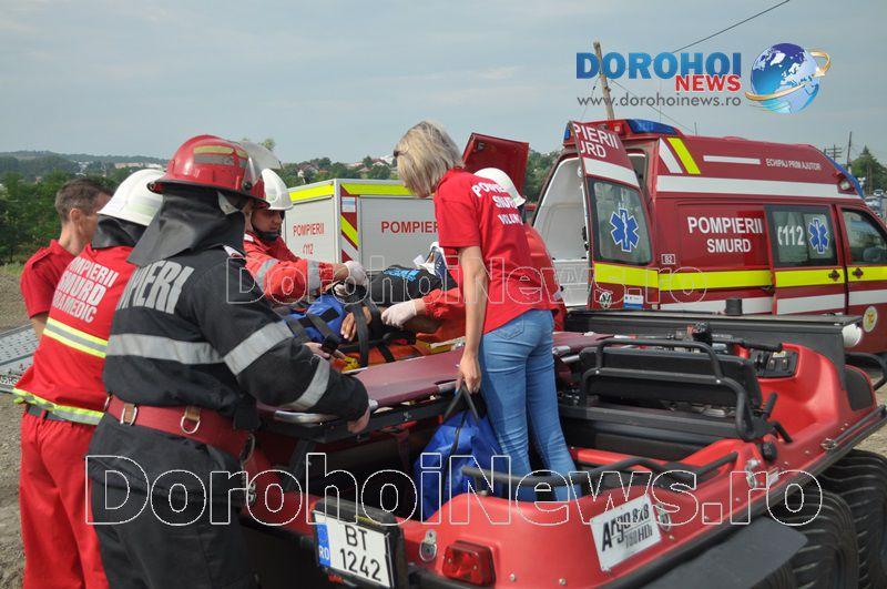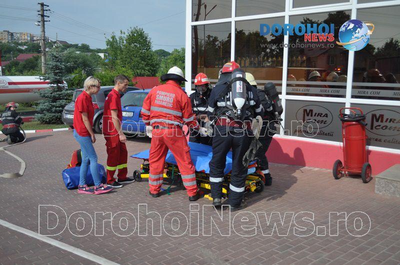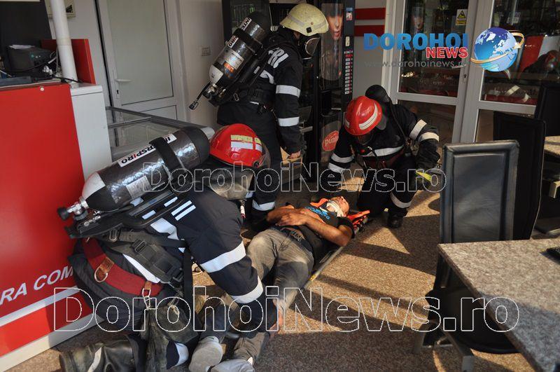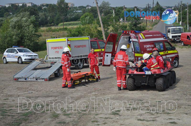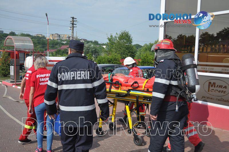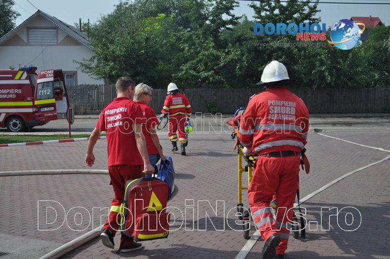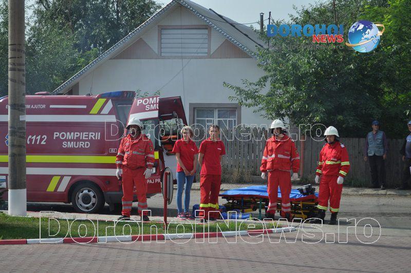 Acest exercițiu a fost unul de verificare a viabilității planurilor operative în cadrul producerii unor incendii la astfel de obiective. Exercițiul de astăzi a fost în urma producerii unui cutremur simulat urmat de un incediu și preluarea unei victime de sub dărâmături. A fost trimis anunțul prin 112 la Detașamentul de Pompieri Dorohoi, iar la fața locului s-au deplasat un număr de 17 de subofițeri, un ofițer și trei voluntari, cu trei autospeciale de stingere cu apă și spumă de capacitate mare, o ambulanță SMURD și o autospecială de primă intervenție la incendii, salvări persoane și acordarea primului ajutor, cu autospeciala UTV.