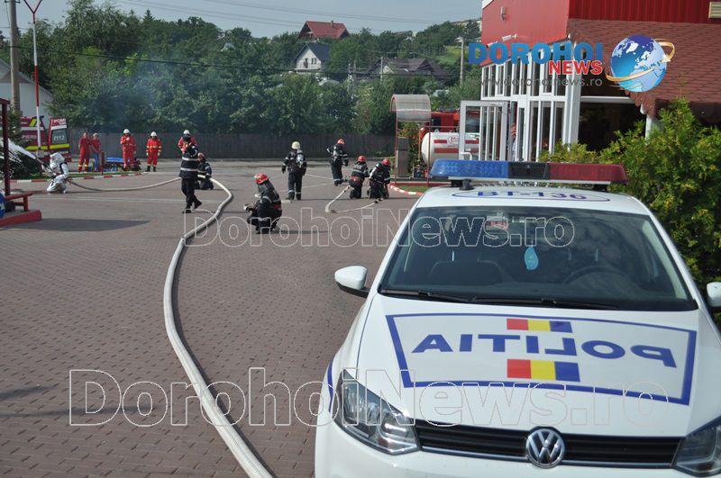 La acest exercițiu au mai participat și echipaje din cadrul Poliției Municipale Dorohoi, SVSU Dorohoi și Poliției Locale Dorohoi. Tot marți, 25 iulie 2017, Detașamentul de Pompieri Dorohoi a desfășurat exerciții asemănătoare la stații de distribuție carburanți din Darabani și Săveni. (Andrei B.)