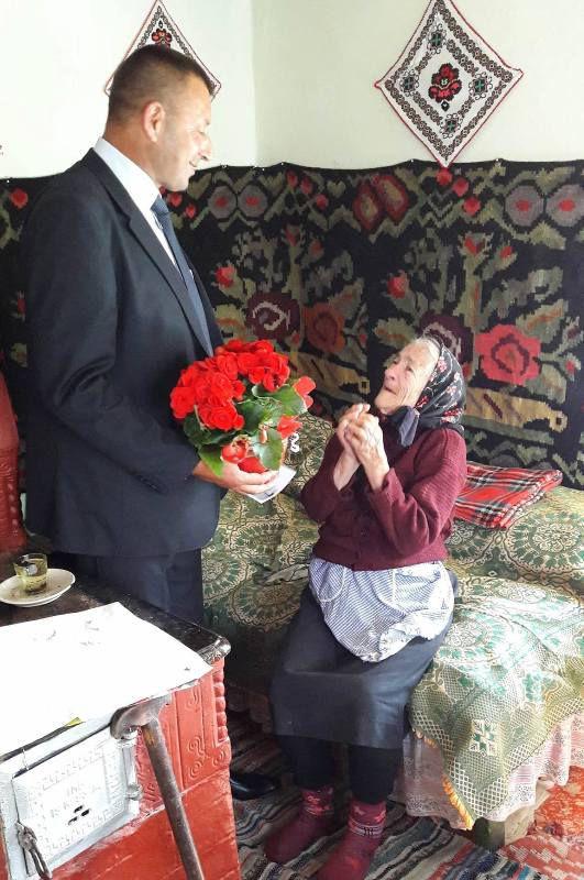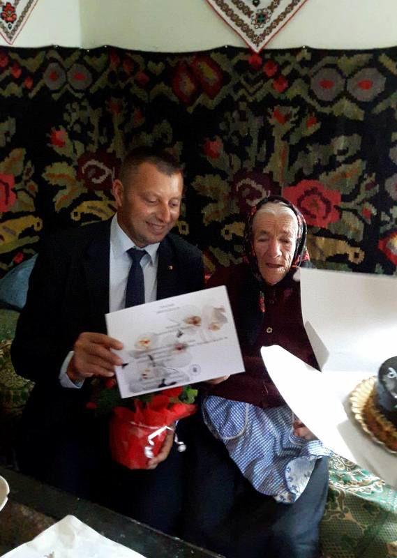 Primarul comunei Broscăuți, Aurel-Costel Agheorghițoaei, vizibil emoționat, i-a înmânat sărbătoritei o diplomă aniversară. Cu ochii în lacrimi, bătrâna i-a mulțumit pentru gest, urându-le sănătate celor prezenți.