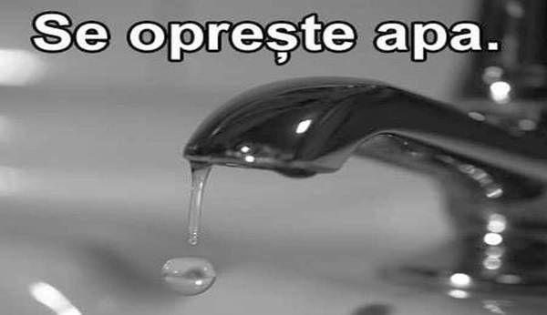 Furnizarea apei va fi oprită în data de 09 octombrie 2017 ora 08:00, iar reluarea furnizării apei va începe în data de 10 octombrie 2017 ora 22:00.