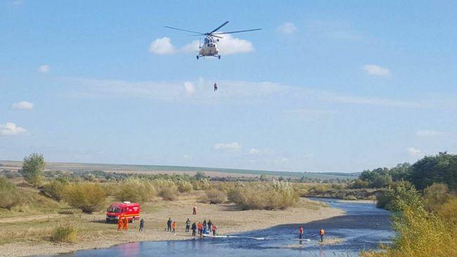 Exercițiul a debutat cu simularea unor acțiuni de căutare-salvare a unor persoane dispărute în acumularea Rogojești.
