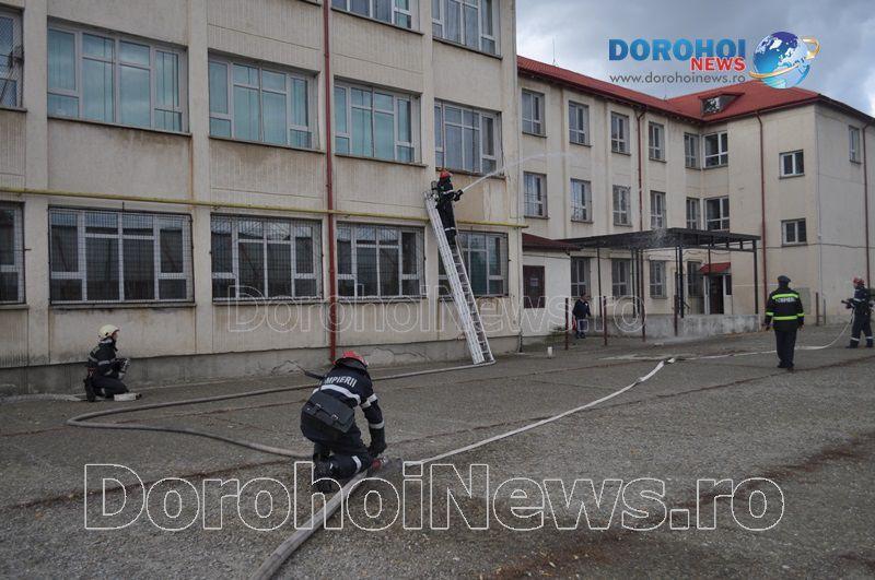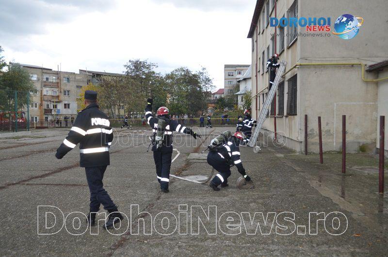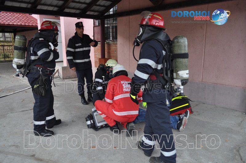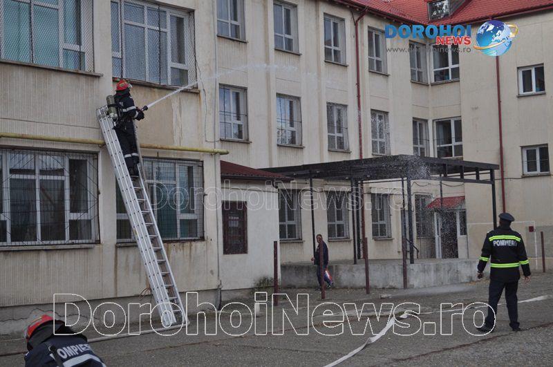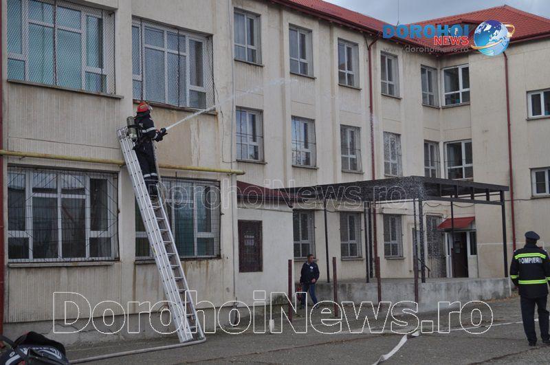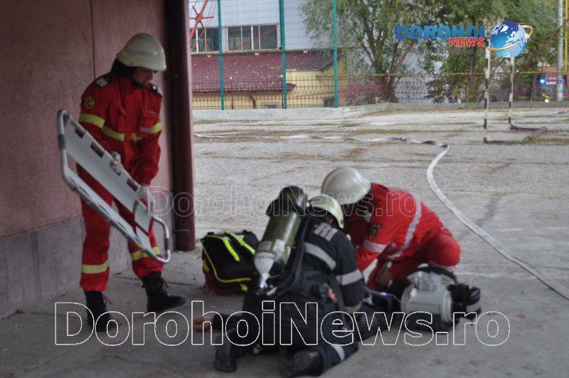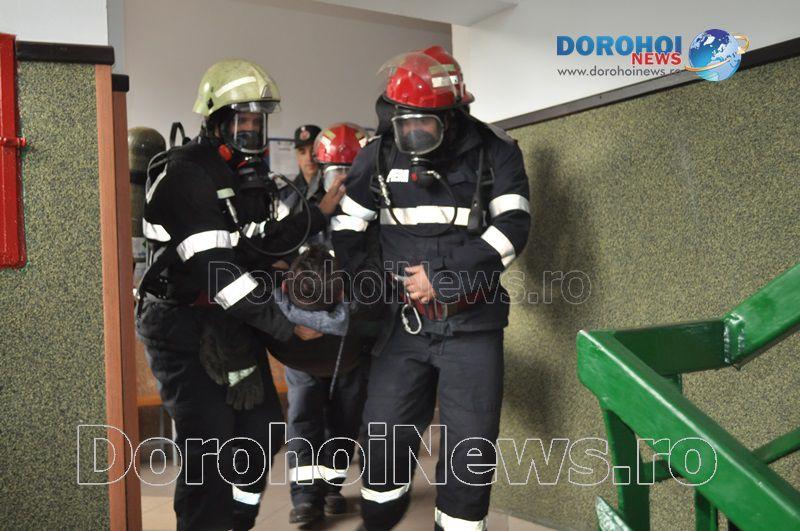 Acest exercițiu a fost unul de verificare a viabilității planurilor operative în cadrul producerii unor incendii la astfel de obiective, respectiv obiective cu aglomerări de persoane. Exercițiul de astăzi a fost în urma producerii unui cutremur simulat urmat de un incediu din cauza unui scurtcircuit la centrala termică. A fost trimis anunțul prin 112 la Detașamentul de Pompieri Dorohoi, iar la fața locului s-au deplasat trei autospeciale de stingere cu apă și spumă de capacitate mare, o ambulanță SMURD și o autospecială de primă intervenție și comandă.