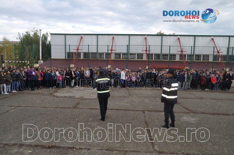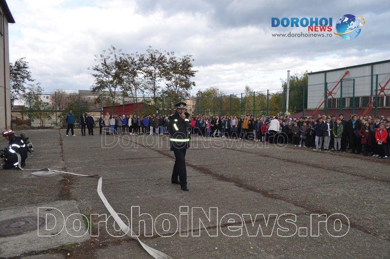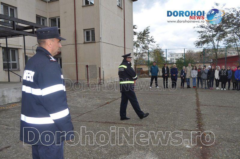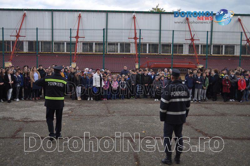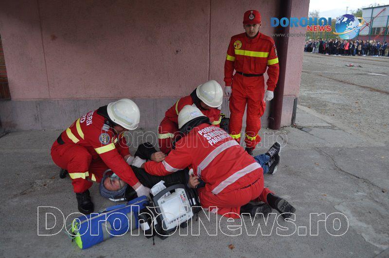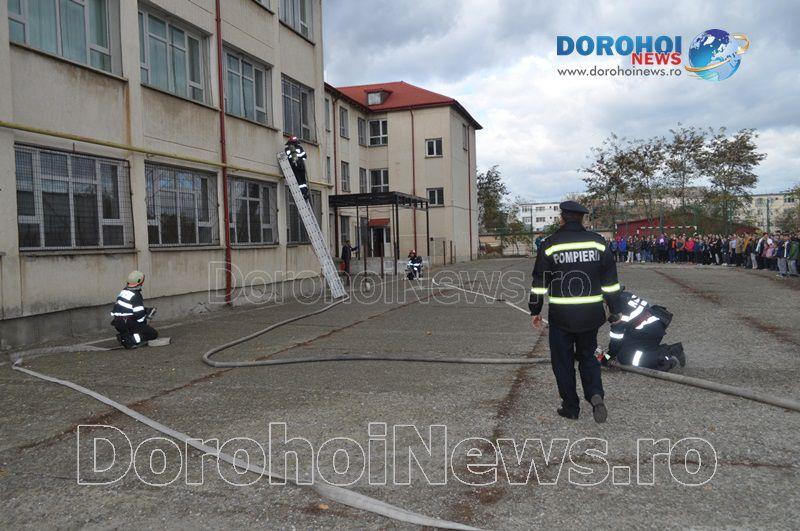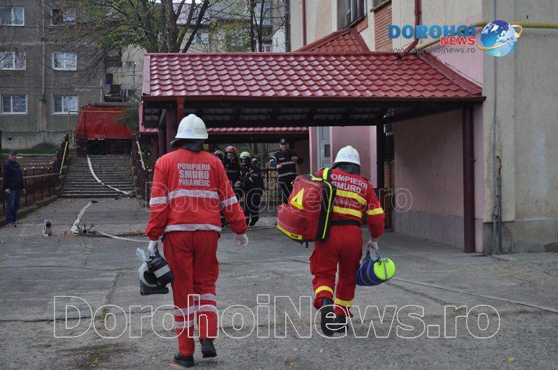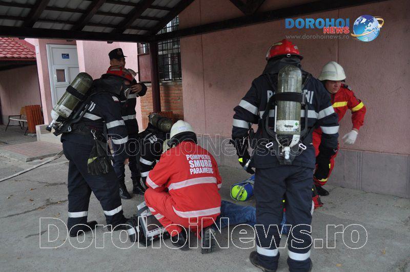 Acest exercițiu a fost unul de verificare a viabilității planurilor operative în cadrul producerii unor incendii la astfel de obiective, respectiv obiective cu aglomerări de persoane. Exercițiul de astăzi a fost în urma producerii unui cutremur simulat urmat de un incediu din cauza unui scurtcircuit la centrala termică. A fost trimis anunțul prin 112 la Detașamentul de Pompieri Dorohoi, iar la fața locului s-au deplasat trei autospeciale de stingere cu apă și spumă de capacitate mare, o ambulanță SMURD și o autospecială de primă intervenție și comandă.