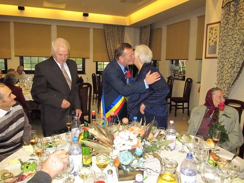 Prezent la eveniment, primarul Dorin Alexandrescu a trecut pe la fiecare masă şi a ciocnit o cupă de şampanie cu sărbătoriţii, oferind câte un trandafir doamnelor dar şi câte o diplomă şi un plic conţinând suma de 300 de lei, fiecărui cuplu.