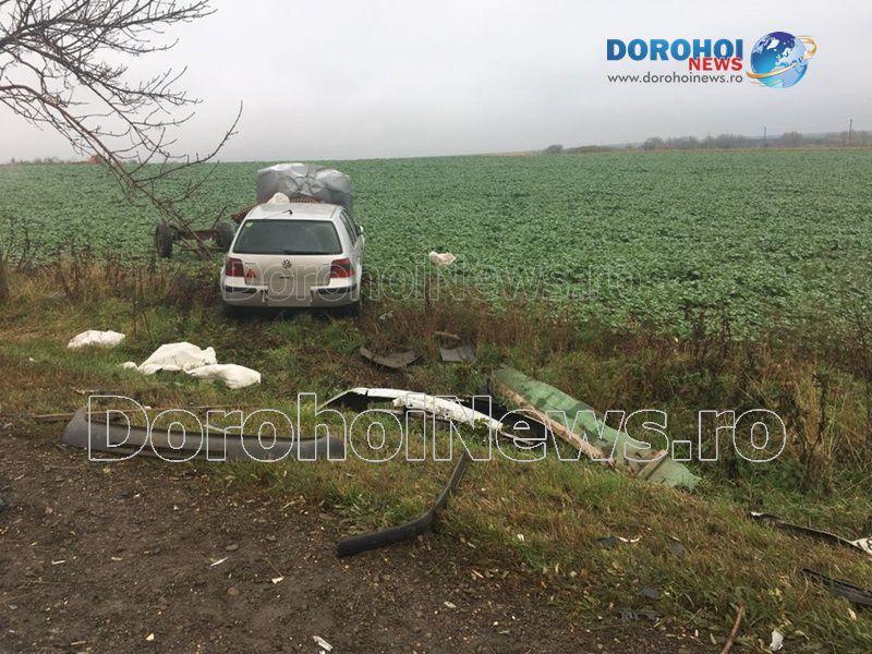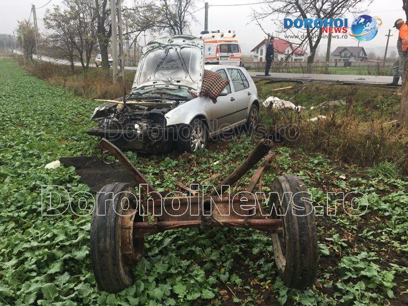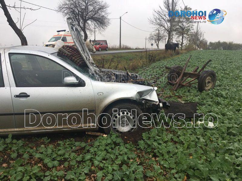 O mașină a spulberat o căruță și apoi a ieșit în afara părții carosabile vineri, 10 noiembrie 2017, în jurul orei 08:40, pe drumul DN 29B, în apropierea localității Saucenița.
