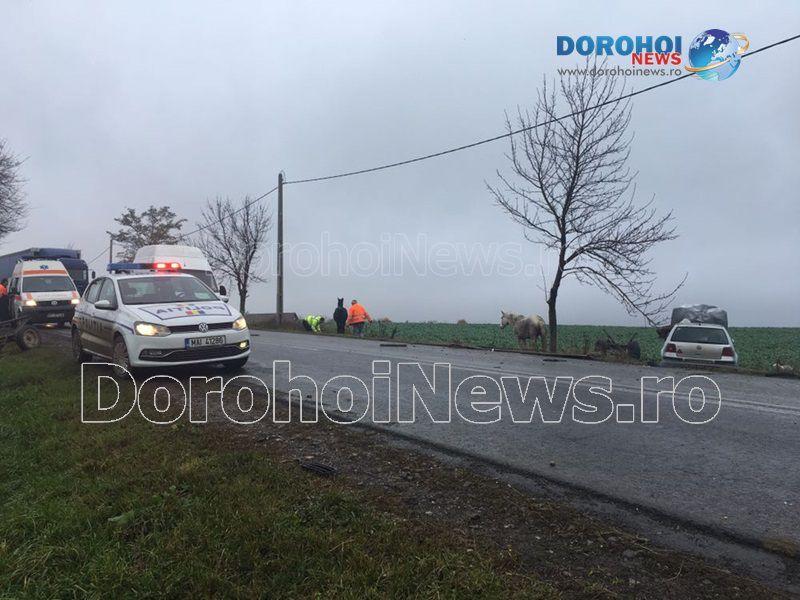 Un pasager din căruță, în vârstă de 55 de ani, a suferit otoragie pe partea dreaptă și politraumatism prin accident rutier, acesta fiind stabilizat de cadrele medicale de pe ambulanță și apoi preluat de echipajul SMURD de Terapie Intensivă Mobilă și transportat la Botoșani. Celalalt pasager din căruță, în vârstă de 62 de ani, a primit îngrijirile medicale la fața locului apoi a fost preluat de ambulanță și transportat la Spitalul Dorohoi cu politraumatism prin accident rutier.