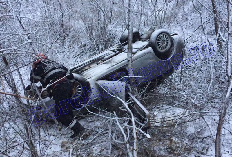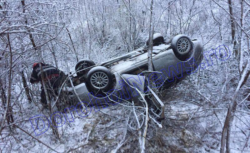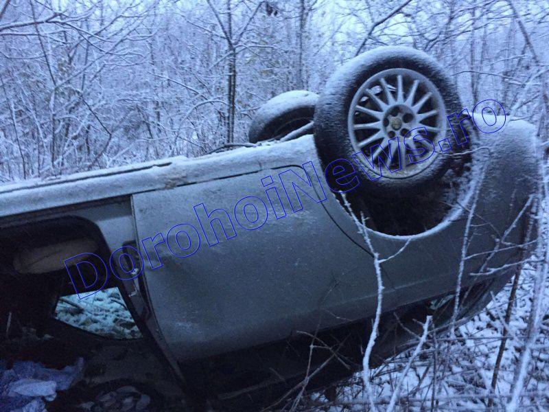 Un autoturism care se deplasa, sâmbătă dimineaţă, pe DN 29B Dorohoi-Botoșani, s-a răsturnat în afara şoselei, după ce conducătorul auto a pierdut controlul asupra volanului. În maşina cu acesta se afla şi fiul său.