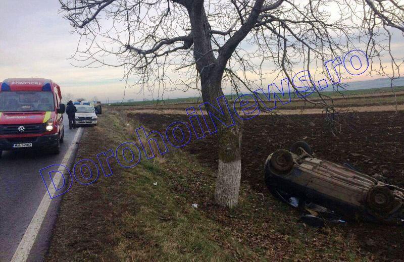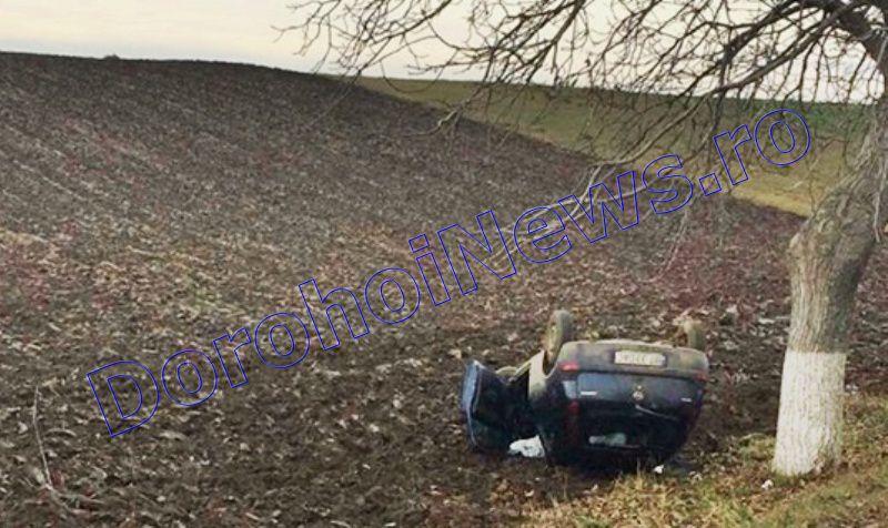 Doi bărbați au fost răniți, marți, după ce mașina în care se aflau s-a răsturnat pe un câmp de pe marginea drumului național Botoșani-Dorohoi.
