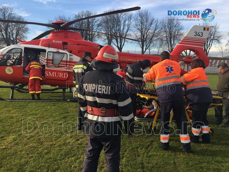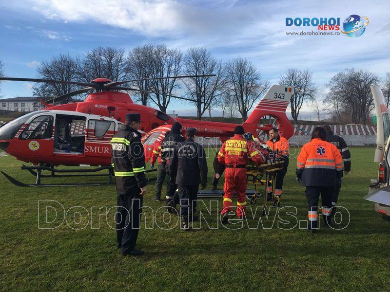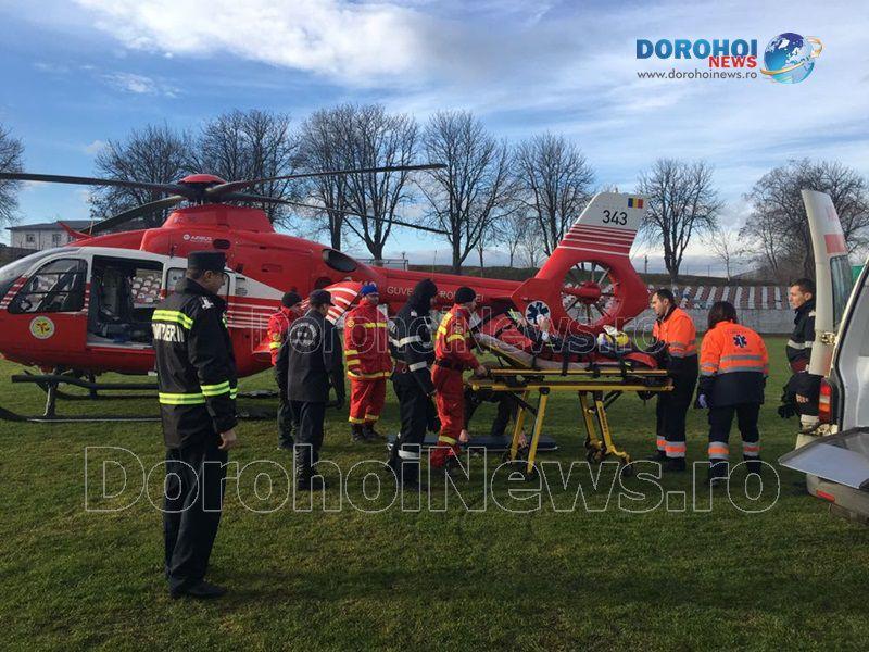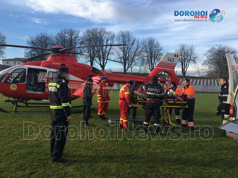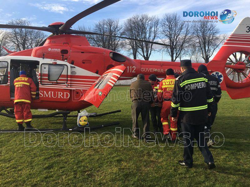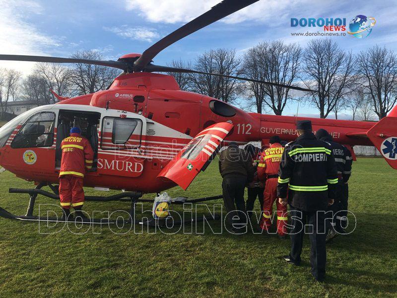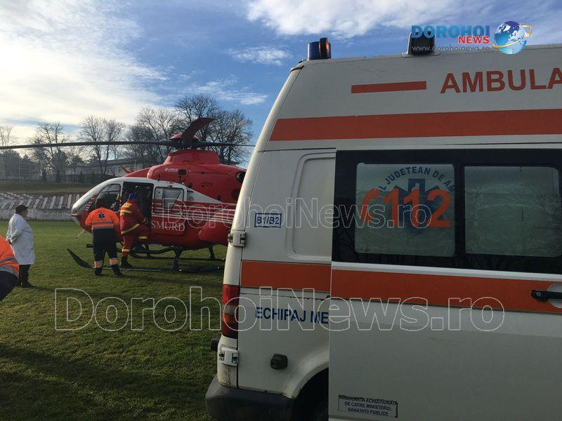 L. R., din Dorohoi, a fost adus de ambulanță la Spitalul Municipal Dorohoi după ce aceasta, acuza dureri în zona pieptului. Acesta a primit îngrijirile medicale necesare și apoi s-a solicitat elicopterul SMURD pentru transferul la Iași.