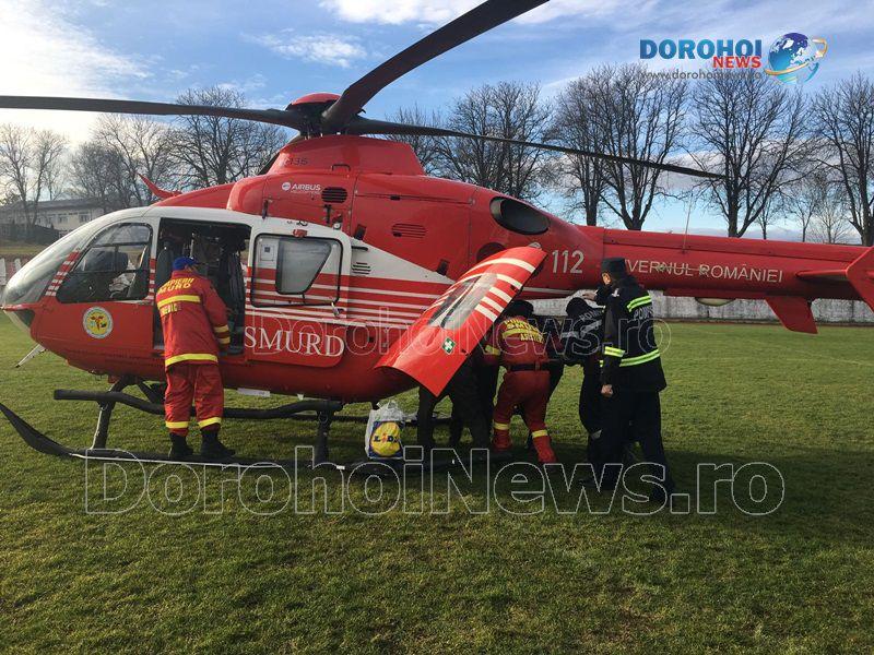 Aparatul de zbor a aterizat pe stadionul „1 Mai” din Dorohoi, în jurul orei 10:00, de unde l-a preluat pe bărbat, pentru a-l transporta la Iași. (Andrei B.)