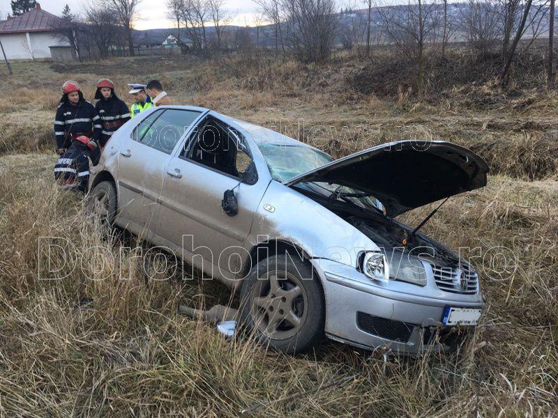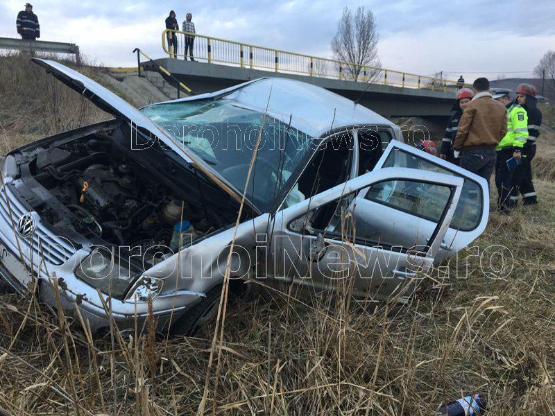 Un tânăr de 19 ani, G. S., care conducea un autoturism Volkswagen dinspre Dorohoi spre Suceava, pierde controlul asupra volanului, prinde acostamentul cu pietriș, rupe un parapet și se răstoarnă într-o râpă.
