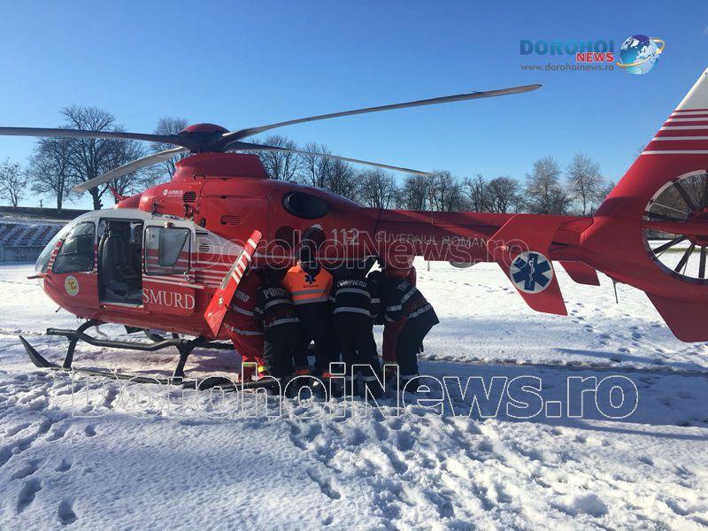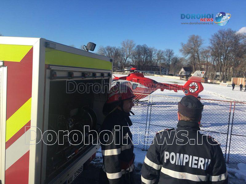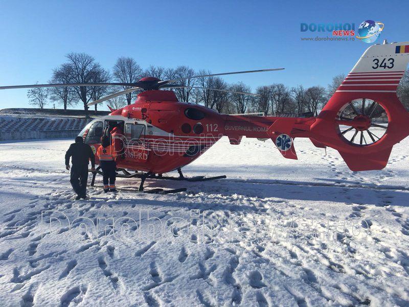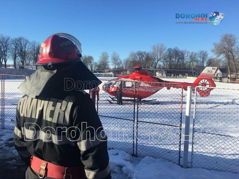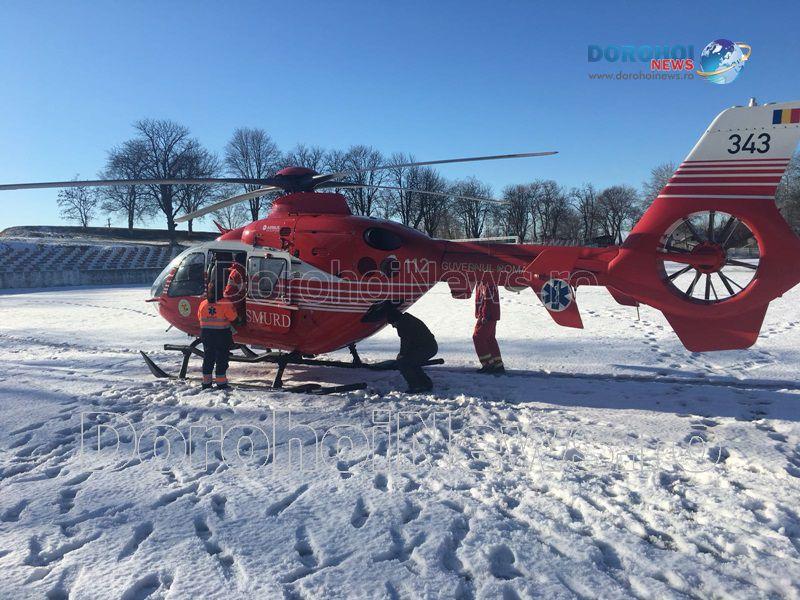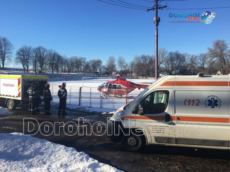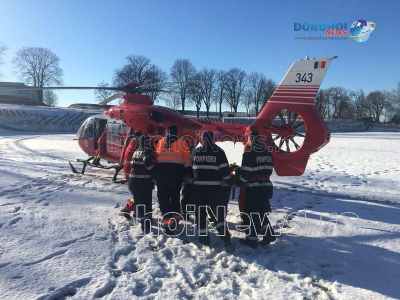 O femeie în vârstă de 62 de ani a fost preluată marți, 30 ianuarie 2018, de un elicopter SMURD de la Dorohoi, acesta aflându-se în comă de gradul III.