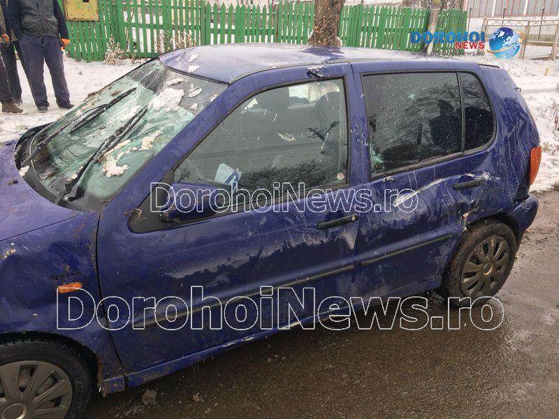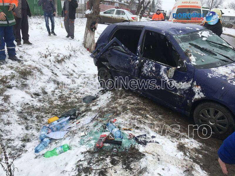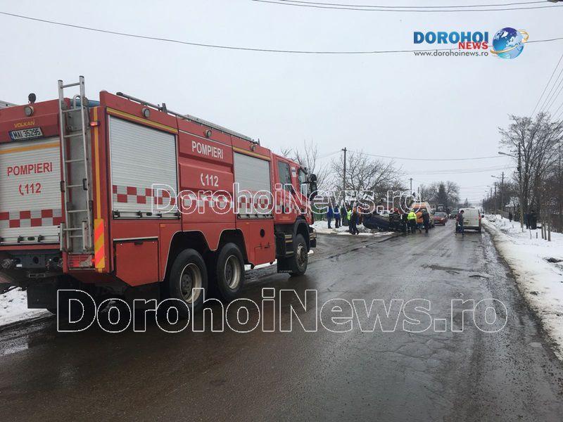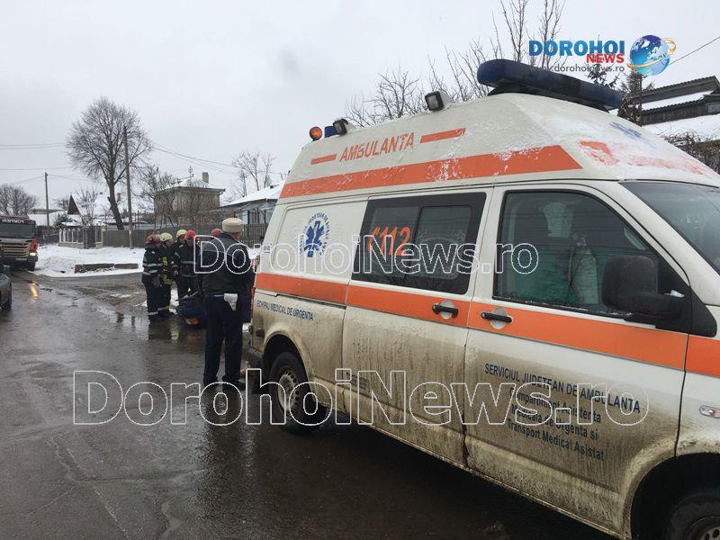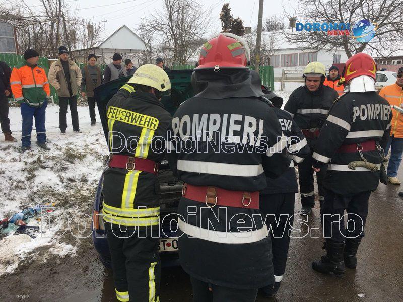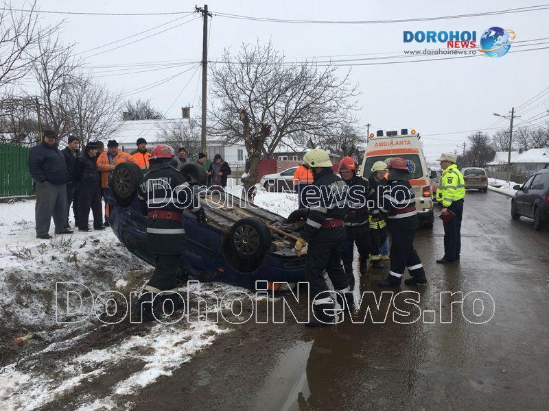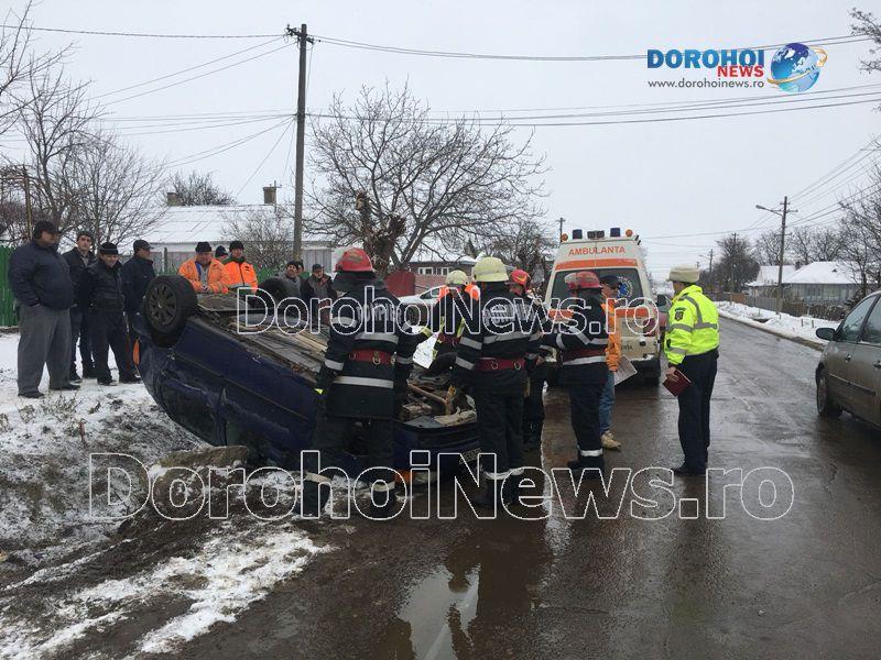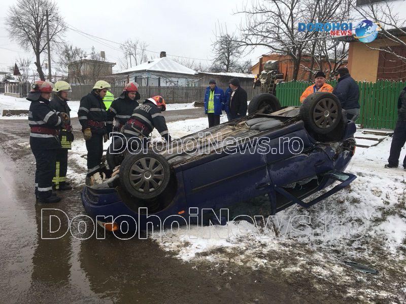 Două persoane s-au răsturnat cu mașina în dimineața zilei de marți, 6 februarie 2018, pe strada Sf. Ioan Românul, din municipiul Dorohoi.