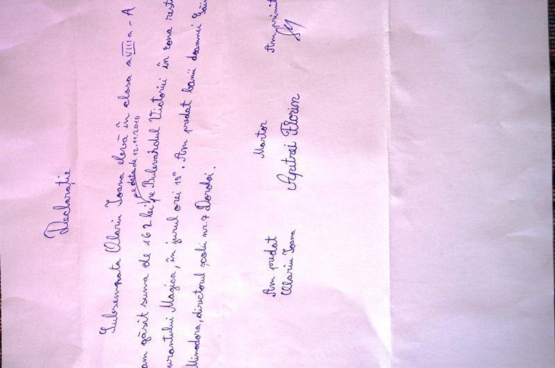 „Mergeam spre casă împreună cu alţi colegi şi la un moment dat am văzut banii împrăştiaţi pe trotuar. La început am crezut că este o farsă dar m-am convins că banii sunt reali. M-am gândit că aceşti bani pot fi pierduţi de un pensionar care poate are o pensie de trei milioane de lei sau de o altă persoană care are nevoie de ei. Acasă, m-am consultat şi cu părinţii şi am hotărât că cel mai bine este să-i aduc la şcoală iar conducerea să anunţe poliţia. Cred că gestul meu este normal, Dumnezeu ne vede pe toţi, ne ia poate un lucru dar ne dă altceva în loc , de multe ori înzecit” , a declarat in exclusivitate pentru DorohoiNews.ro Ioana Olariu.